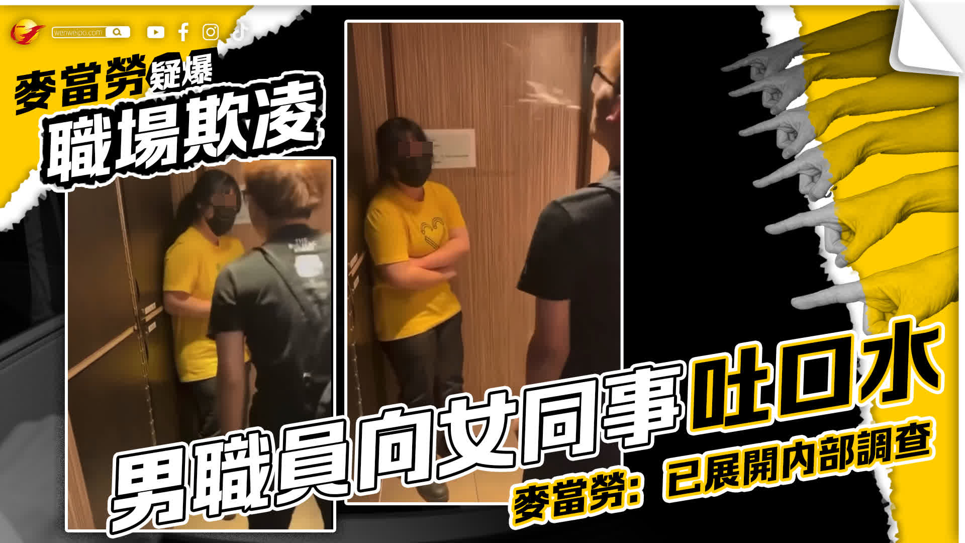 香港文匯報訊(記者 蕭景源)麥當勞近日傳出職場欺凌事件,一名男職員懷疑斥責女性同事,甚至三度朝對方吐口水,嚇得女職員即時低頭及側面閃避,神情驚慌。事件曝光後引發輿論譴責,大批網友質疑男員工舉動有干犯襲擊罪之嫌,麥當勞發言人表示,得悉事件後已即時聯絡相關員工並進行內部調查,並重申對任何欺凌事件一直採取零容忍態度,將嚴肅處理個案及加強紀律培訓,以確保員工享有安心的工作環境。