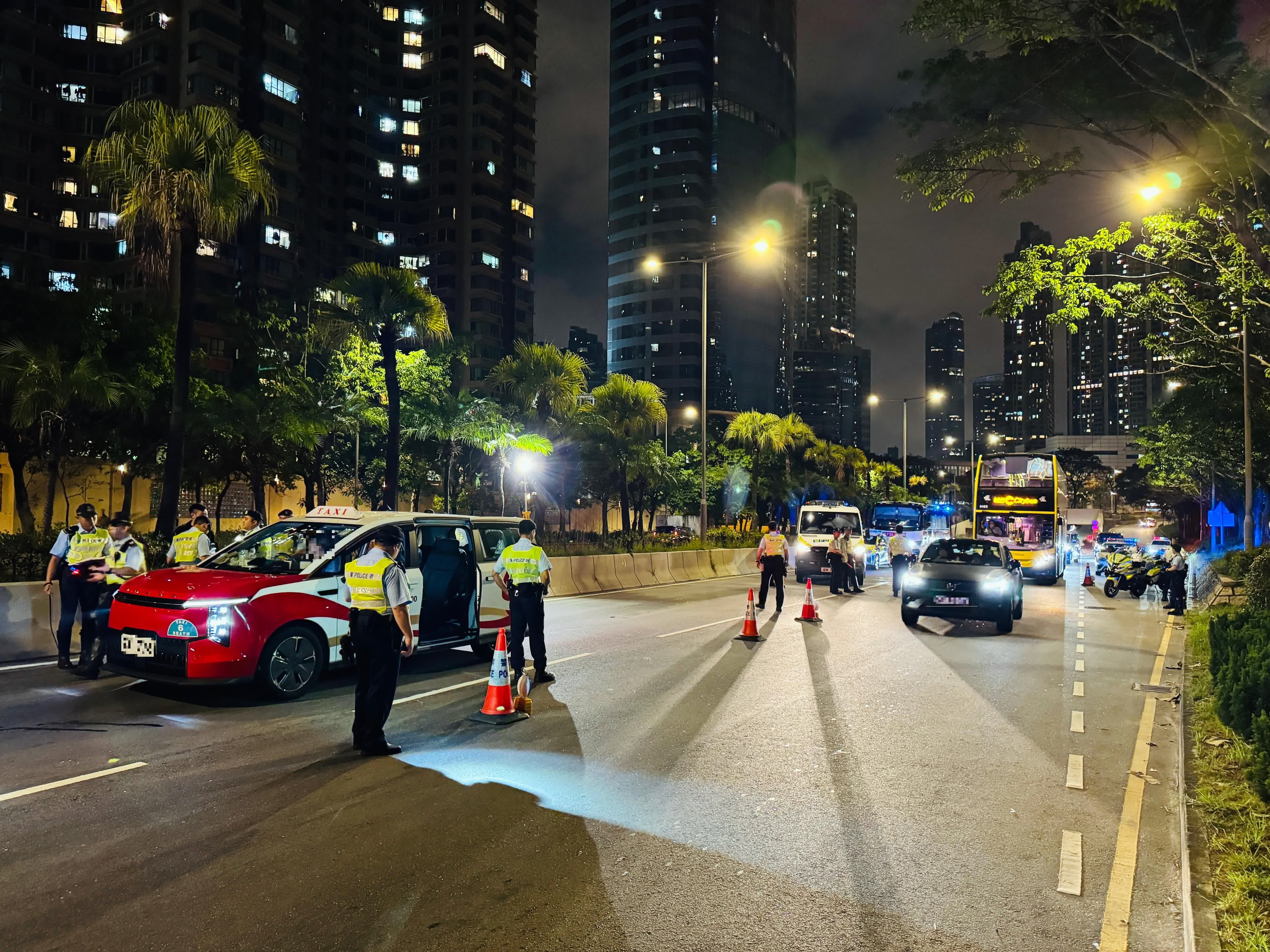 西九龍總區交通部署理總督察鄭皓銘表示,警方另在區內多處設置的大型路障截查車輛,拘捕7男2女(16至40歲),其中一名被捕男子涉嫌「盜竊」罪和違反法庭擔保條件而被通緝。至於年紀最細的16歲少女,涉嫌藏有懷疑含依托咪酯成份的電子煙。警方強調非常關注青少年濫藥情況,會加強執及打擊有關罪行。