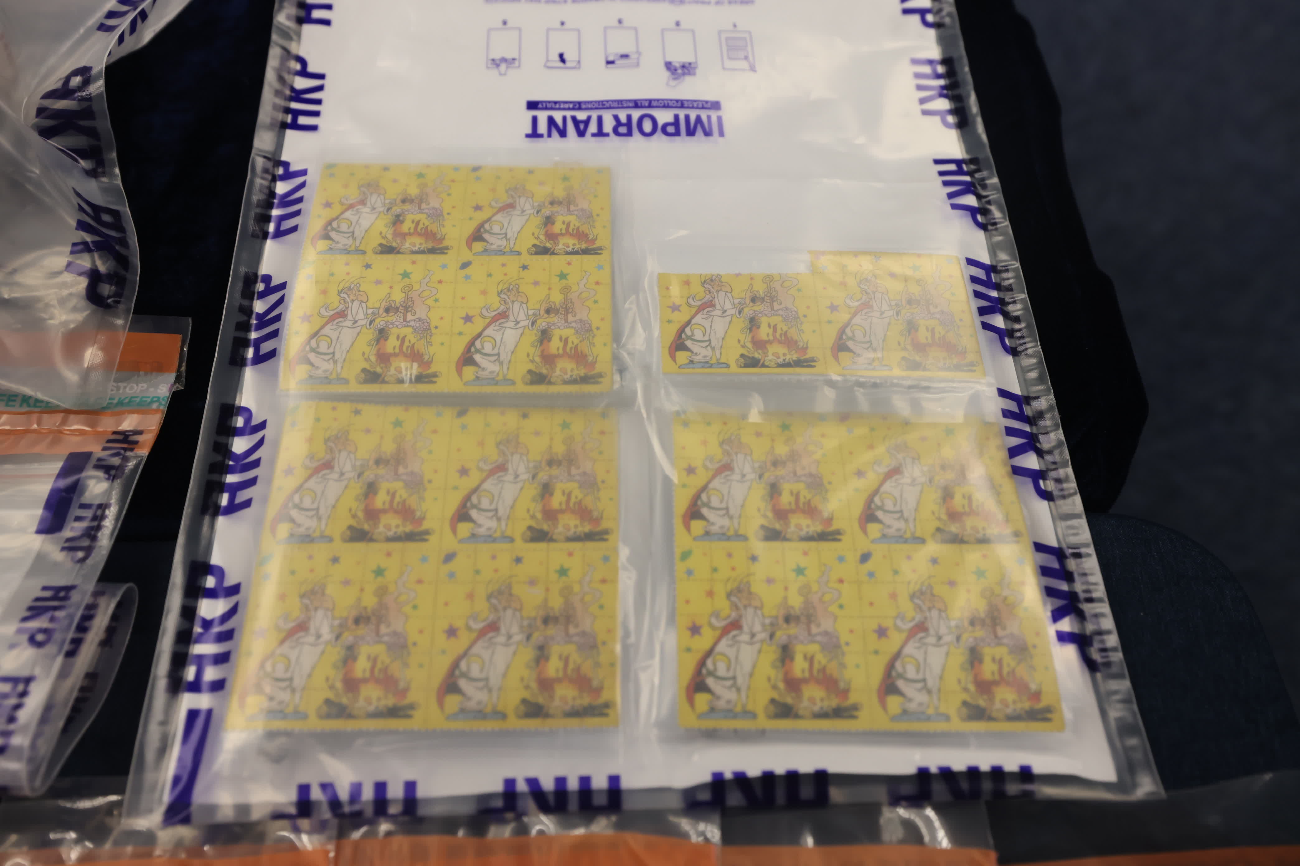 警方及後再車內搜出14.7萬元毒品,當中包括大麻朱古力、大麻油、大麻糖、大麻、可卡因及345張毒郵票。車上4人則涉嫌「販運危險藥物」被捕,其中姓嚴男司機未能通過酒精呼氣測試,同時涉嫌「危險駕駛」及「狂亂駕駛」罪,現正被扣留調查。據悉,男司機疑有黑社會背景,涉案毒品主要供應西九龍區,來源仍有待追查。