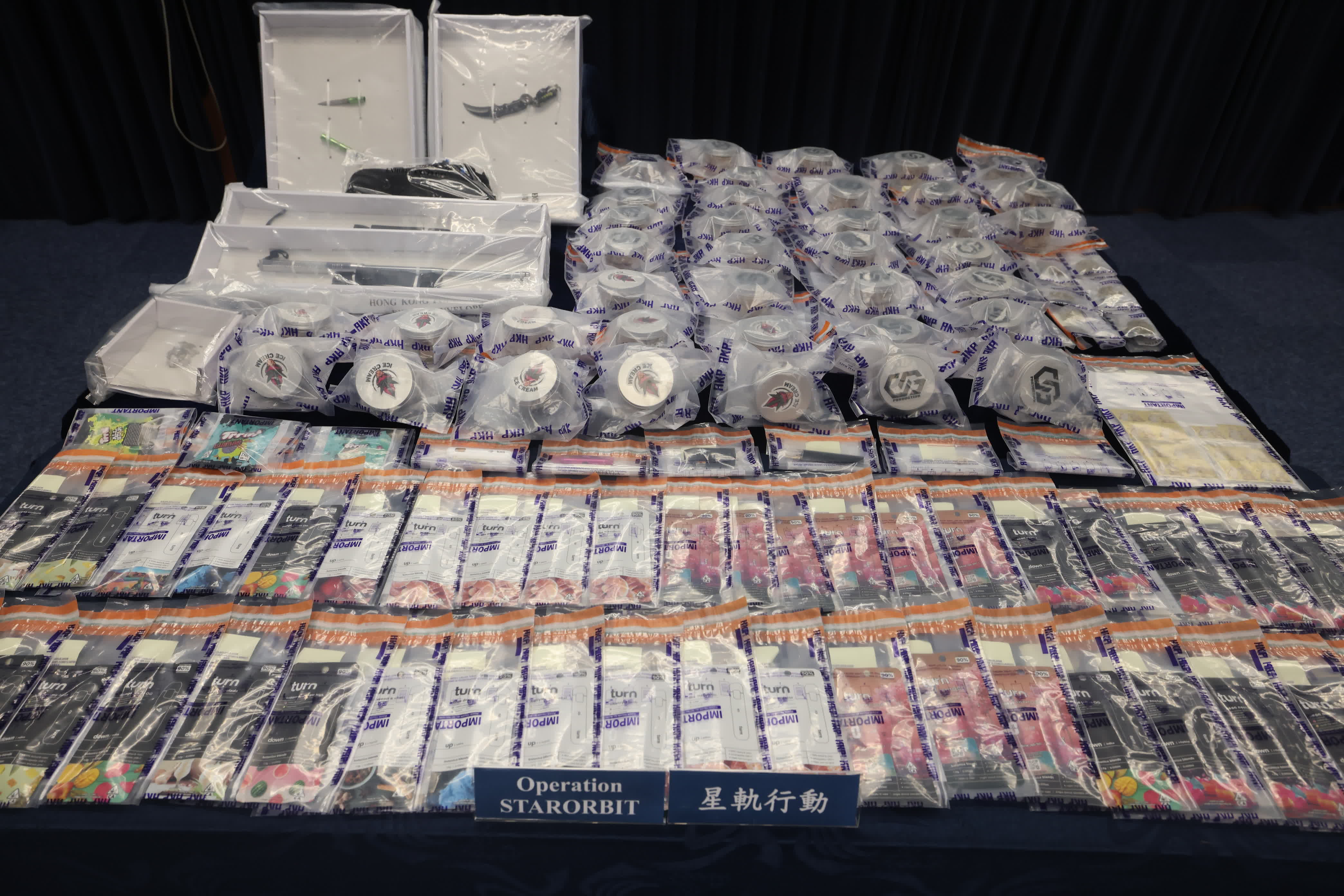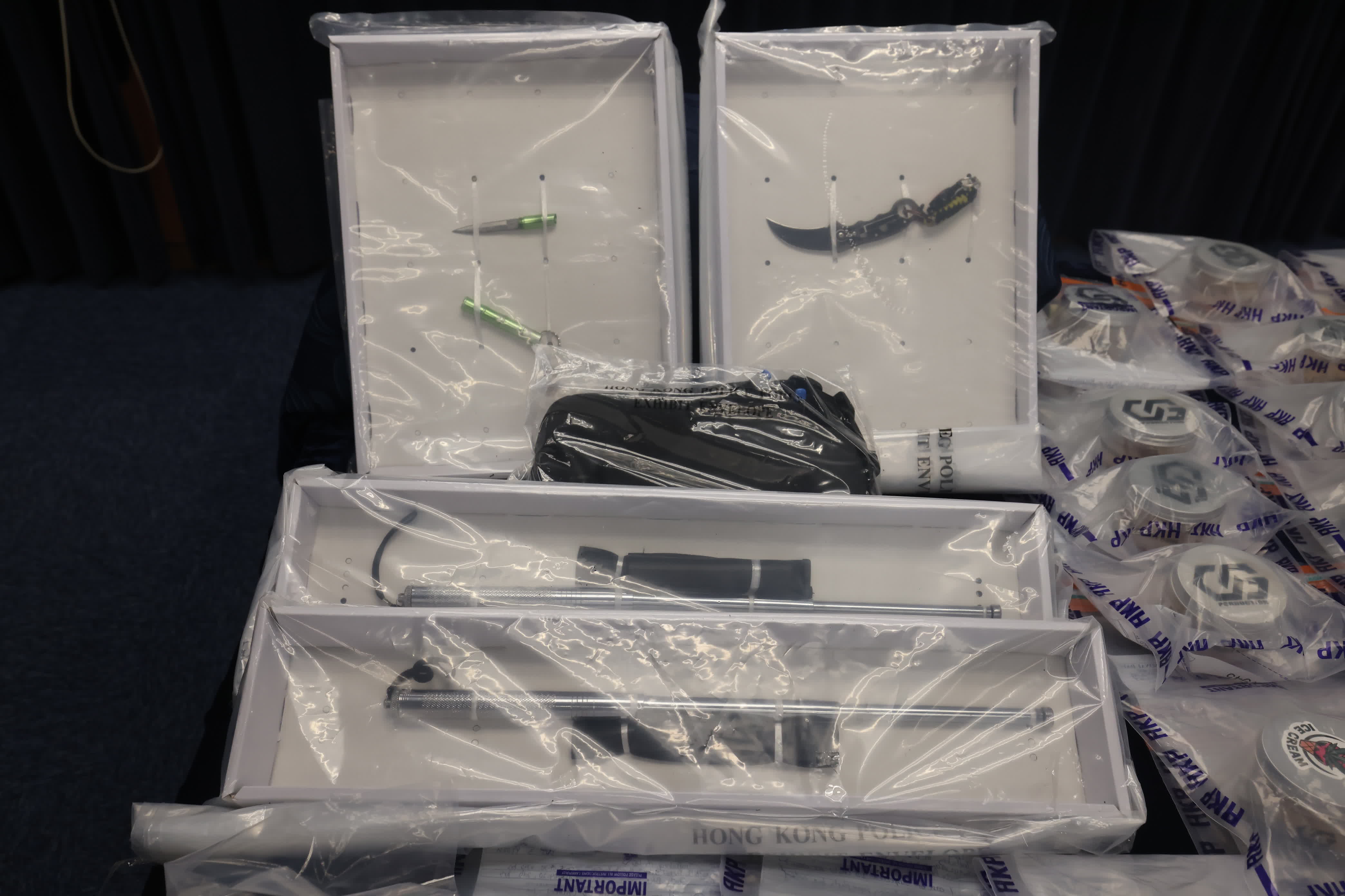 被捕的22男12女(13至71歲),當中5人為非華裔人士,分涉「販運危險藥物」、「管有攻擊性武器」及「狂亂駕駛」等罪。檢獲的毒品包括38罐大麻朱古力、47支大麻油、113克大麻糖、28.8克大麻、5克大麻花、5克可卡因、21克冰毒、19粒太空油毒品煙彈和345枚毒郵票,總值約17萬元。至於檢獲的違禁武器包括伸縮棍、摺刀和鐵蓮花。