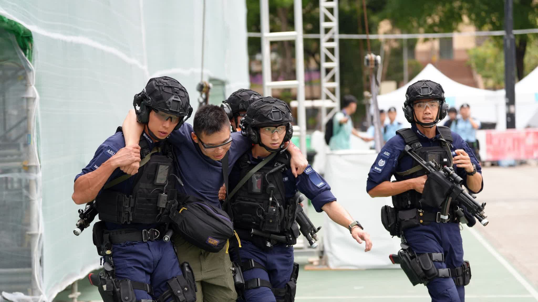 香港文匯報訊(記者 蕭景源)警務處今日(21日)聯同全國運動會香港賽區統籌辦公室、消防處、民安隊及醫院管理局等多個部門,於銅鑼灣維多利亞公園舉行跨部門演習,旨在加強警方與各持份者在賽事期間應對重大事故及反恐事件的應變能力。