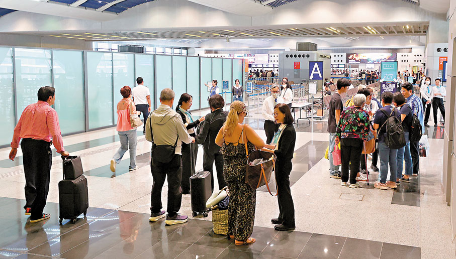 香港特區政府近年積極推動香港郵輪旅遊發展,並聯同香港旅發局爭取不同國際郵輪公司安排旗下郵輪停泊香港,以及以香港作為母港。繼香港中旅集團旗下星旅遠洋郵輪「PIANO LAND」(鼓浪嶼號)於上周起以香港為母港推出航線後,皇家加勒比國際遊輪(Royal Caribbean International)旗下的海洋贊禮號亦於昨日以香港為母港從啟德郵輪碼頭啟航,展開6天5夜日本沖繩及基隆的行程。香港文匯報記者在現場直擊登船情況,一眾旅客拖着一件件大行李陸續離境,臉上都展現出對旅行的興奮之情。有業界指出,郵輪旅遊發展潛力巨大,建議本港旅遊業界提供更多元的本地旅行體驗以吸引郵輪旅客到訪。 ●香港文匯報記者 蔡學怡