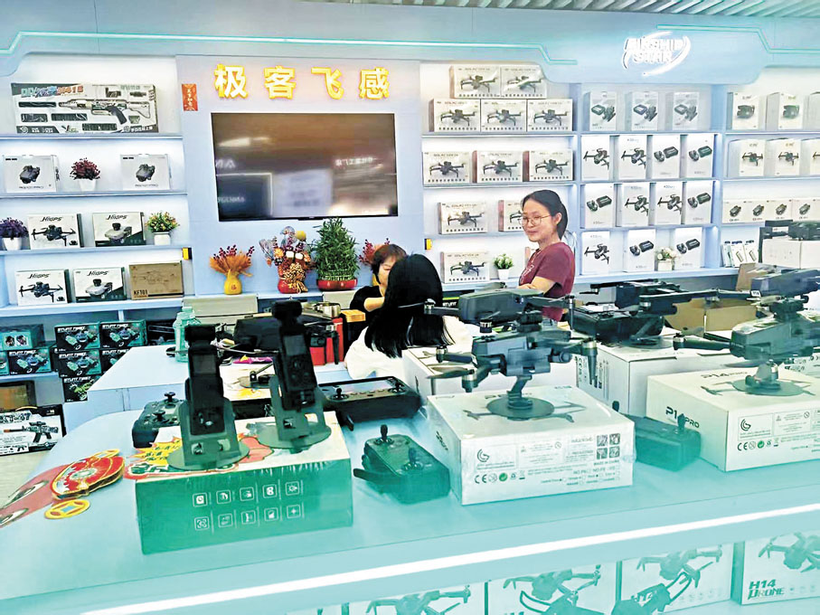 在曼哈智能數碼交易中心一名店員表示,該公司銷售玩具機器人、無人機等,以內銷為主,也有出口歐洲、中東和東南亞等地。其中一款玩具機器人售價是190元,可以與人對話。另一款支援英文語音機器人是最新上市的,除可以對話外,還可以編程,售價是300元。這兩款機器人都有外國商人前來購買,有的是自己帶一兩個,有的則是批發到國外銷售。他們只管交貨,不管是哪個國家,物流和關稅都是由客戶自己負責。
