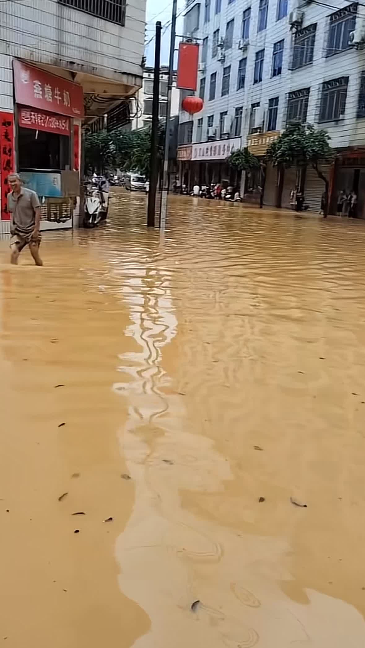 多名網友上傳的視頻顯示,在荷花鎮當地泥黃色的河水已漫過道路,部分農田被淹沒,秧苗幾乎全毀。甚至有的視頻直呼「一片汪洋大海」。記者在社交平台想連線現場網友,部分網友因「有規定」婉拒採訪,但均證實「雨下得太大了,很多道路都泡在黃泥水裏」。