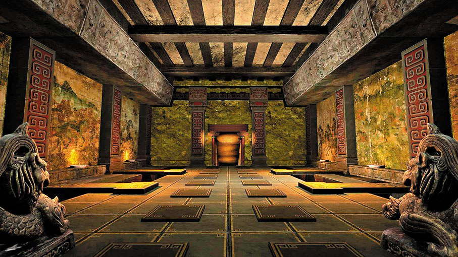 「我們在《唐宮夜宴》採用『無線串流』,將內容存儲於服務器,體驗時即時傳輸至頭顯設備,優勢在於畫質清晰、光影效果卓越,能1:1複刻唐代洛陽城風貌,讓觀眾走進含元殿、漫步洛水,但成本較高。《隱秘的秦陵》則選擇『一體機』,將內容直接嵌入頭顯,並通過將虛擬現實技術與實體場地相結合的LBE技術,進行快速部署和規模化落地,初期畫質略遜於串流,但成本低、便於落地,且經技術迭代後畫質已與串流接近,尤其適合還原秦始皇陵地宮通過核磁共振探測到的真實地貌,包括石壁雕花、星宿布局、水銀河流等細節,兼具歷史嚴謹性與沉浸感。」張斌表示,《隱秘的秦陵》美術團隊一年走了三萬多公里,在河南、陝西、甘肅、寧夏、內蒙古、浙江等多地奔波實景掃描。