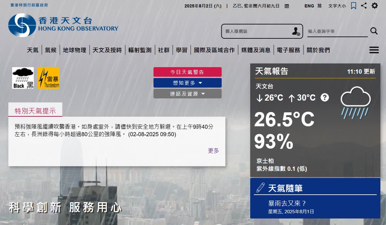 香港文匯報訊(記者 蕭景源)天文台今日(2日)早上9時45分改發黑色暴雨警告信號,預料強陣風繼續吹襲香港。因應黑色暴雨警告信號已經發出,醫院管理局宣布,轄下所有普通科門診診所、專科門診診所包括專職醫療等服務、老人科日間醫院和精神科日間醫院的服務將會停止,惟有關診所會繼續服務已抵達的病人,已經預約而未到達診所的門診病人,請於黑色暴雨警告信號取消後,另約診症時間。公立醫院的急症室維持正常服務。
