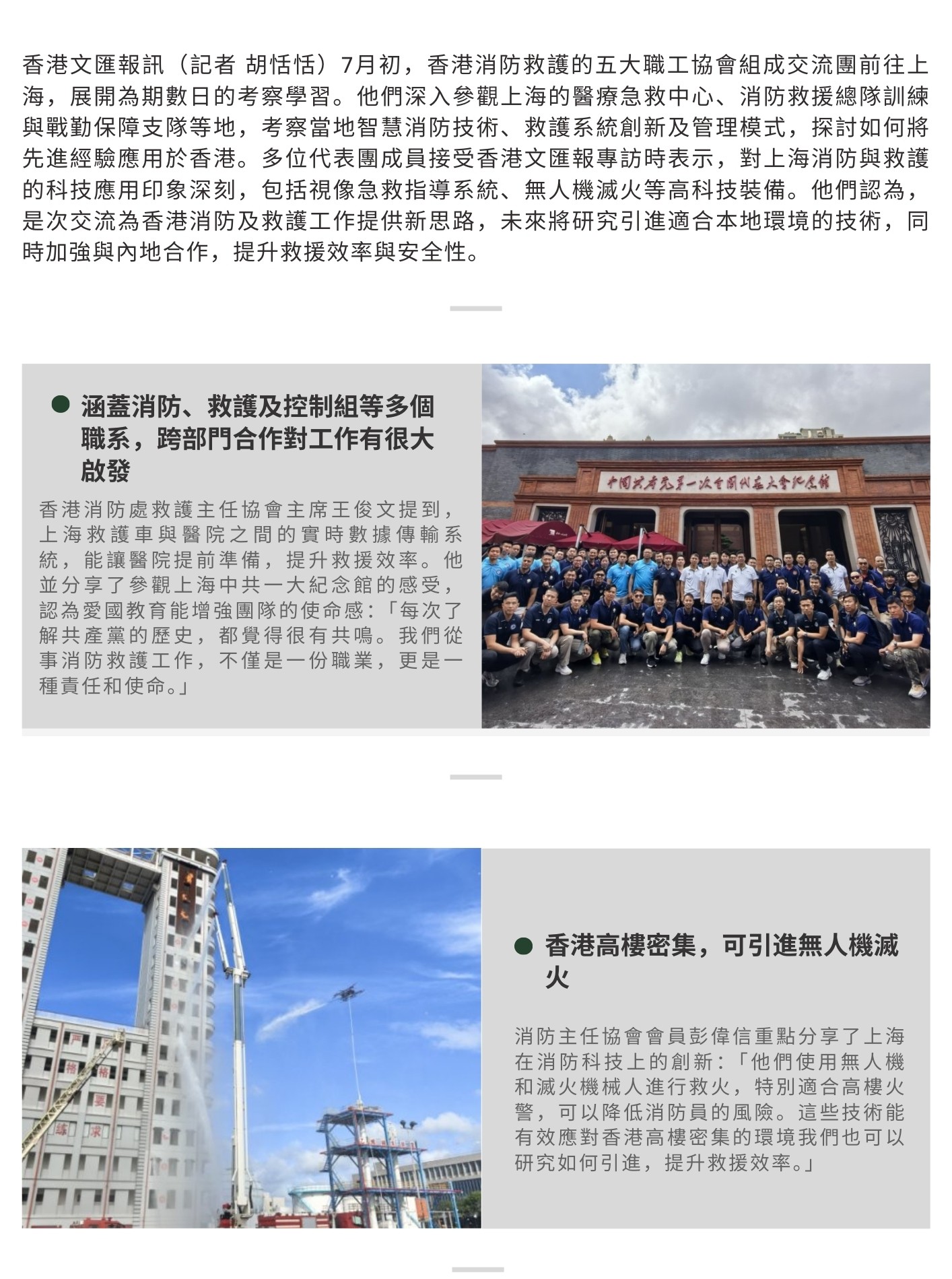 (有片)專訪|無人機滅火、AI管司機、視像指導急救——香港消防救護員上海取經:我們要加快追上