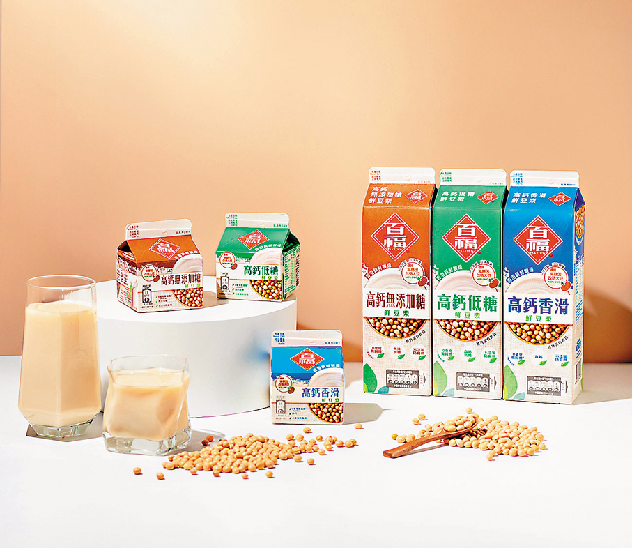 最近,全新推出的百福高鈣鮮豆漿系列,選取非基因改造大豆,並採用「一次萃取」技術精製而成,完整保留優質大豆蛋白質及濃郁豆香,不重複榨取,確保產品的新鮮純正﹔而優質大豆蛋白質更有助於身體組織的生長及修復,是健康生活的理想選擇。
