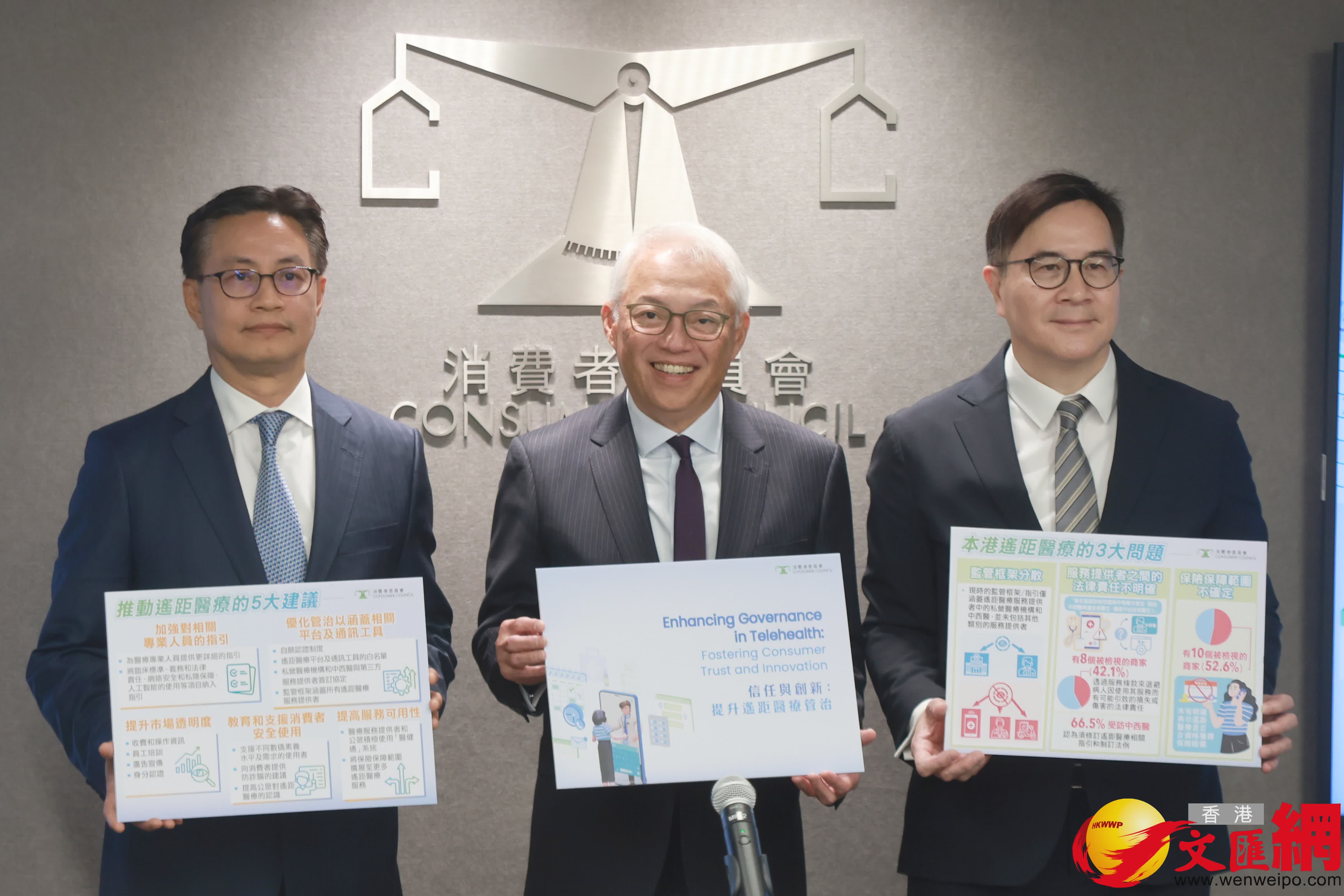 為透過優化管治及提升市場透明度,以賦權消費者並加強使用遙距醫療服務的保障,消委會提出五大建議。消委會主席陳錦榮表示,建議包括加強對提供遙距醫療服務的相關專業人員的指引、優化管治以涵蓋遙距醫療平台及通訊工具、提升遙距醫療的市場透明度、提高遙距醫療服務的可用性,以及教育和支援消費者安全使用遙距醫療服務。