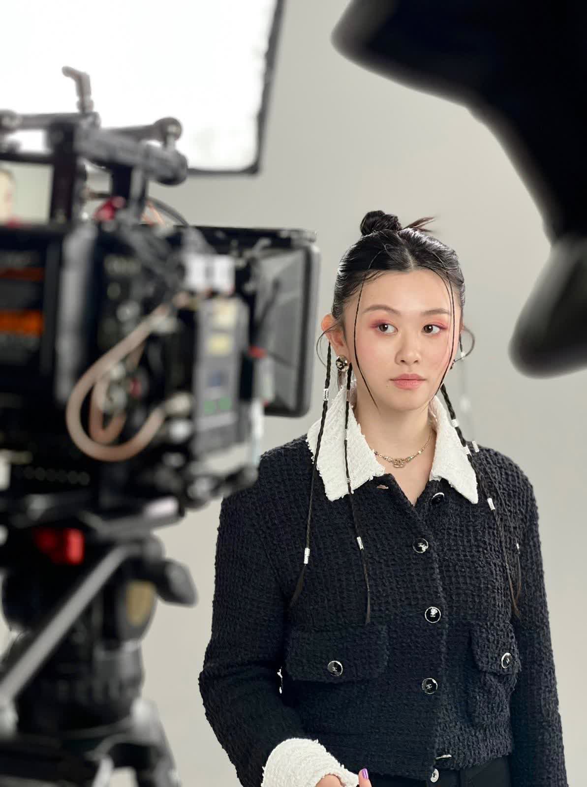品牌䆁出姊妹二人拍攝廣告的花絮,照片中經過團隊的精心改造,沈月和沈日換上青春活潑的造型,令在場所有人眼前一亮。這次沈月大膽突破,一改往日少女甜美形象,展現充滿活力的全新一面;而沈日儘管初次置身於聚光燈下,亦展現出與生俱來的鏡頭魅力,迅速掌握拍攝精髓。作為姊姊的沈月不僅在旁給予鼓勵,更以其對鏡頭的純熟駕馭,引領妹妹迅速進入最佳狀態,每個眼神、每個姿態都流露出超越新人的成熟韻味。二人更憑藉好姊妹的默契,展現出自然流暢的互動,不管是把玩道具珠寶鈕扣時的忘我投入、拋灑璀璨紙屑營造的夢幻氛圍、即興玩起「打手快拍拍手」遊戲等,每個瞬間都真實展現了姊妹間的深厚情誼,令拍攝現場洋溢着歡聲笑語氣氛,每位工作人員都被這份親情所感染,形容是一次充滿愛與溫暖的拍攝體驗。