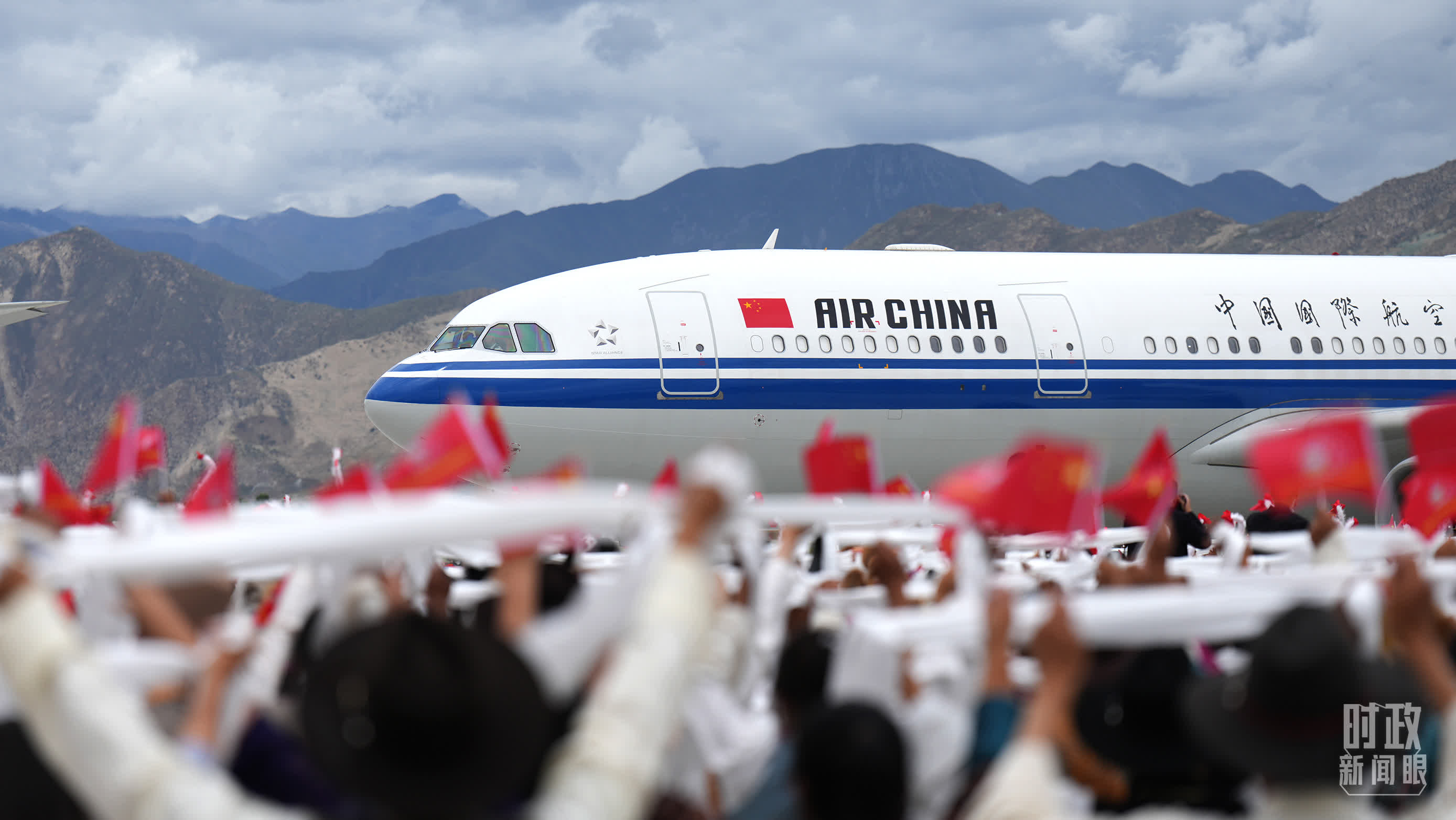 拉薩貢嘎機場紅旗飄揚,鼓樂喧天,氣氛熱烈。20日中午,總書記乘坐的專機在貢嘎機場降落,等候在停機坪的西藏各族各界群眾熱烈歡呼。