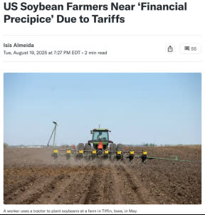 美國輿論認為,美國豆農目前面臨「三座大山」:國際需求萎縮、國內成本飆升、氣候災害頻發。而特朗普政府的這場貿易戰,給美國豆農帶來了空前焦慮。