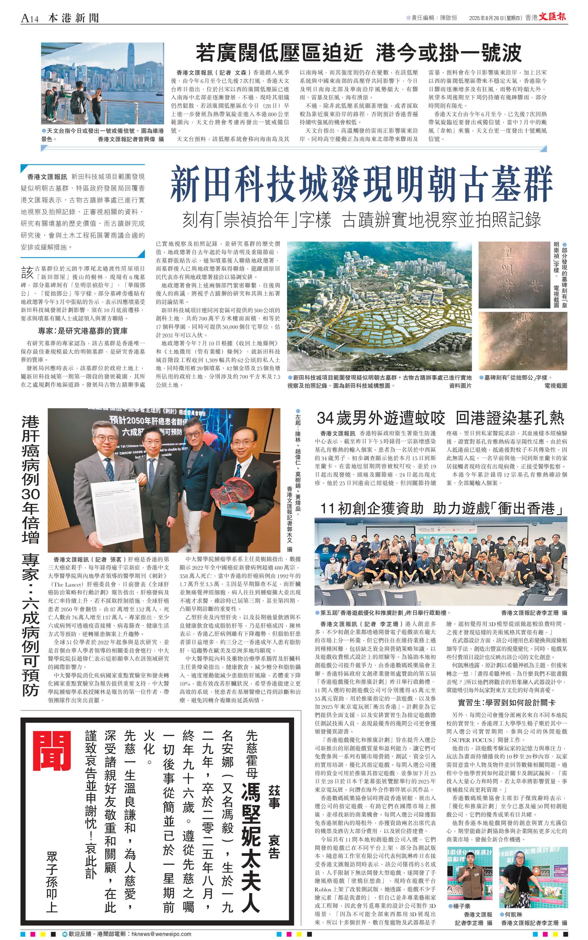 香港文匯報訊 新田科技城項目範圍發現疑似明朝古墓群,特區政府發展局回覆香港文匯報表示,古物古蹟辦事處已進行實地視察及拍照記錄,正審視相關的資料,研究有關墳墓的歷史價值,而古蹟辦完成研究後,會與土木工程拓展署商議合適的安排或緩解措施。