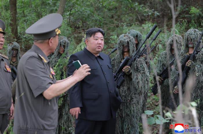 據中新網援引朝中社報道,當地時間8月27日,朝鮮勞動黨總書記、國務委員長金正恩視察朝鮮人民軍總參謀部直屬特種作戰訓練基地,了解狙擊手部隊和特戰部隊訓練情況。