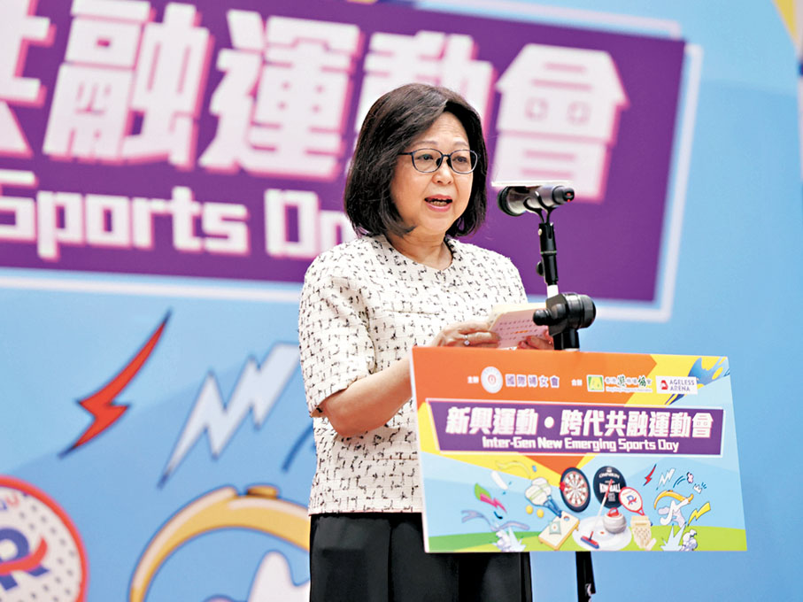 她說,新興運動會以「健康、共融」為主題,藉着新興運動形式,安排長者與青年競技,鍛煉身手,家庭成員亦有機會在場內交流、互動,在汗水和笑聲中增進了解、溝通,正好展現出社會「代代同行、同心共建」的核心價值。
