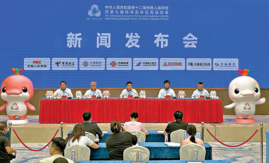 8月30日,全國第十二屆殘疾人運動會暨第九屆特殊奧林匹克運動會(下稱殘特奧會)迎來倒數100天。29日,十五運會和殘特奧會吉祥物運動圖標、運動造型、體育圖標及殘特奧會服裝首次亮相。記者從殘特奧會組委會當天召開的新聞發布會上獲悉,全國已有9,735名殘疾人運動員及教練員報名參賽,其中廣東賽區8,565名,香港賽區733名,澳門賽區437名,總規模創歷屆殘特奧會新高。●圖/文:香港文匯報記者 敖敏輝 廣州報道
