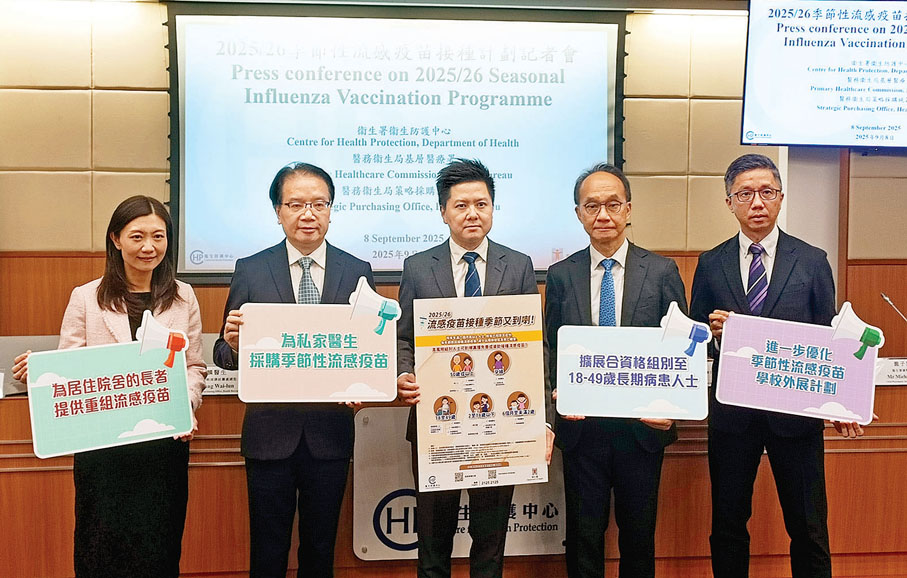 衞生防護中心總監徐樂堅昨日在記者會上指出,去年度衞生署各項疫苗接種計劃,包括學校外展計劃、院舍防疫注射計劃及疫苗資助計劃,共提供209萬劑季節性流感疫苗,較前一年度同期增11%,創歷史新高。期內的成人和兒童嚴重流感個案較新冠疫情前的流感季節,分別下跌兩成和六成,學校爆發流感樣疾病更大跌近九成,顯示疫苗的效果顯著,可有效預防爆發。
