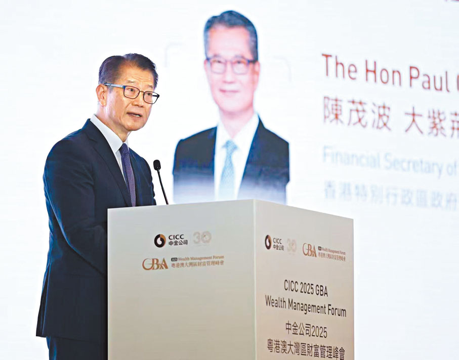 香港文匯報訊(記者 孫曉旭)特區政府財政司司長陳茂波昨日出席「中金公司2025粵港澳大灣區財富管理峰會」表示,香港正吸引更多全球資金匯聚,資金流入自然帶動資產管理業務增長。去年香港管理的資產總值按年增加13%至超過35萬億港元,淨資金流入更達7,050億港元,按年上升超過八成。不少從事資產管理業務的金融機構都在香港擴充業務、增聘人手、租用更多商業樓面。業界估算,香港將在兩三年內成為全球規模最大的跨境財富管理中心。