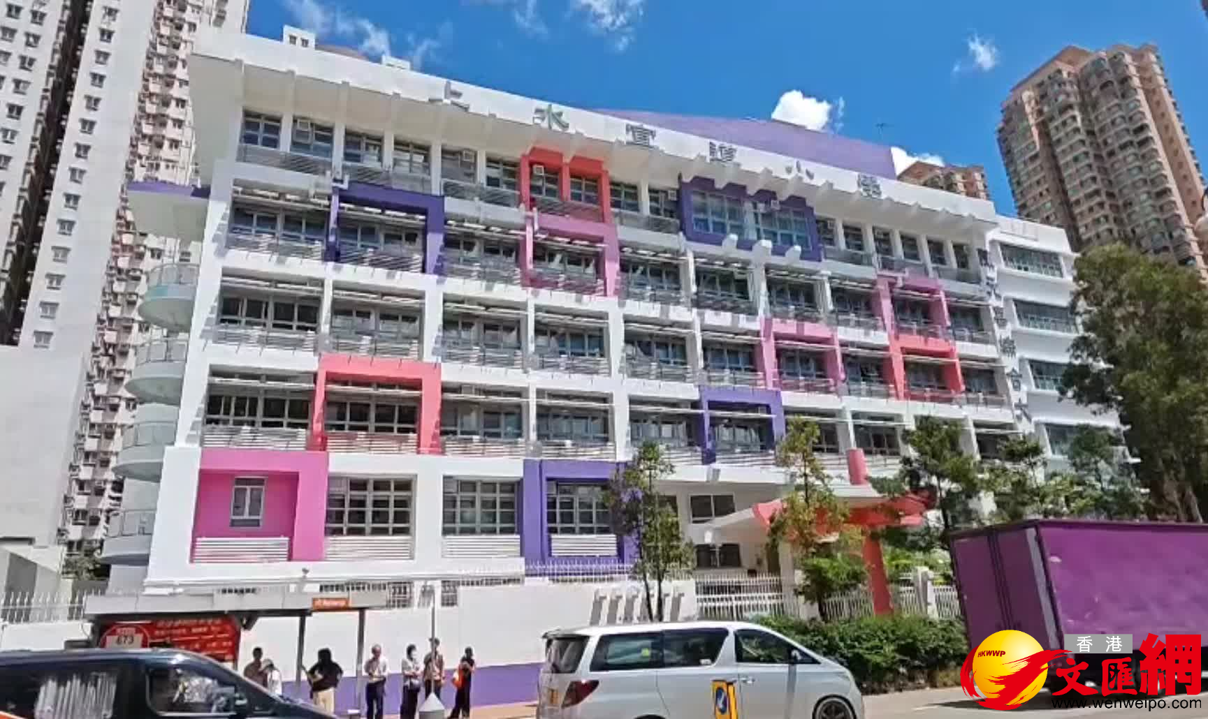 現場所見,學校操場位置有一部大型的水塔機被膠帶圍封,相信是供應學校禮堂的冷氣。學校書記黃小姐表示,今日早上召來技工作維修工程,其間發生工業意外,事主已送院;校方已通知相關部門。