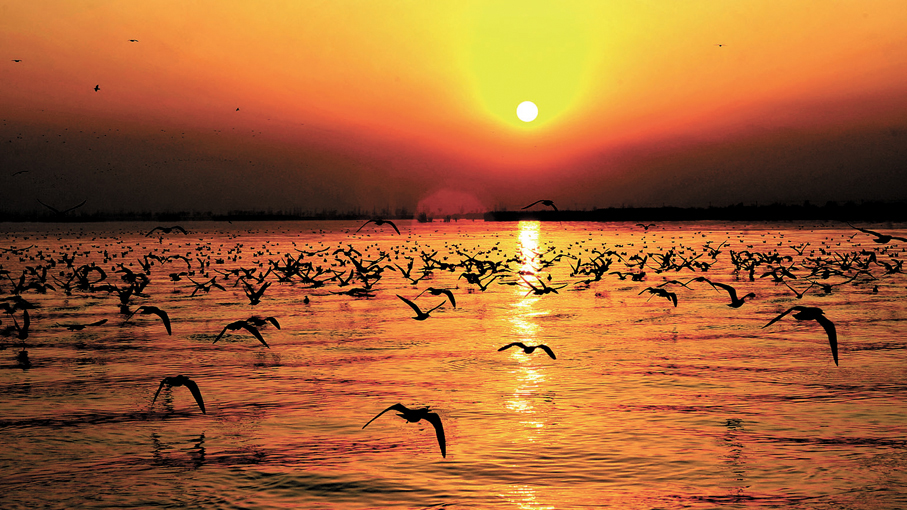 沙湖是魚的世界,也是鳥的天堂,是內地最具特色的觀鳥勝地。春天,成千上萬隻鳥兒在蘆葦間嬉鬧、安家;夏天,蘆叢間鳥巢無數,五顏六色的雛鳥散布其間,堪稱奇觀;秋風乍起,一群群紅嘴鷗起起落落,為遷徙做着準備;初冬時節,湖面水平如鏡,大批南遷的候鳥相繼路過沙湖水域,覓食停歇後繼續南飛。
