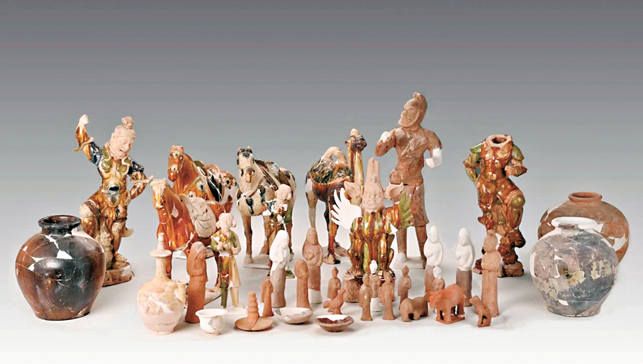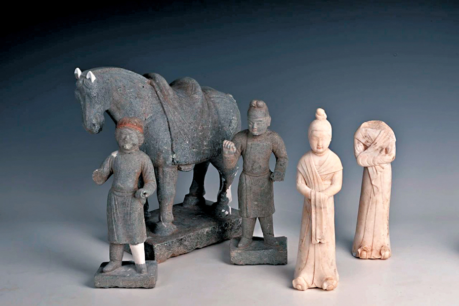 此次發掘的唐玄宗董貴妃之親族董氏家族墓和唐代「安定烏支族」梁氏家族墓地,是我國古代的名門望族墓。梁氏家族墓地,由三座帶天井斜坡墓道磚室墓組成,呈品字形分布。在位於墓地西側的梁幹與陳氏、馬氏夫人合葬墓中,出土青石馬、青石俑、漢白玉俑等石製陪葬品。