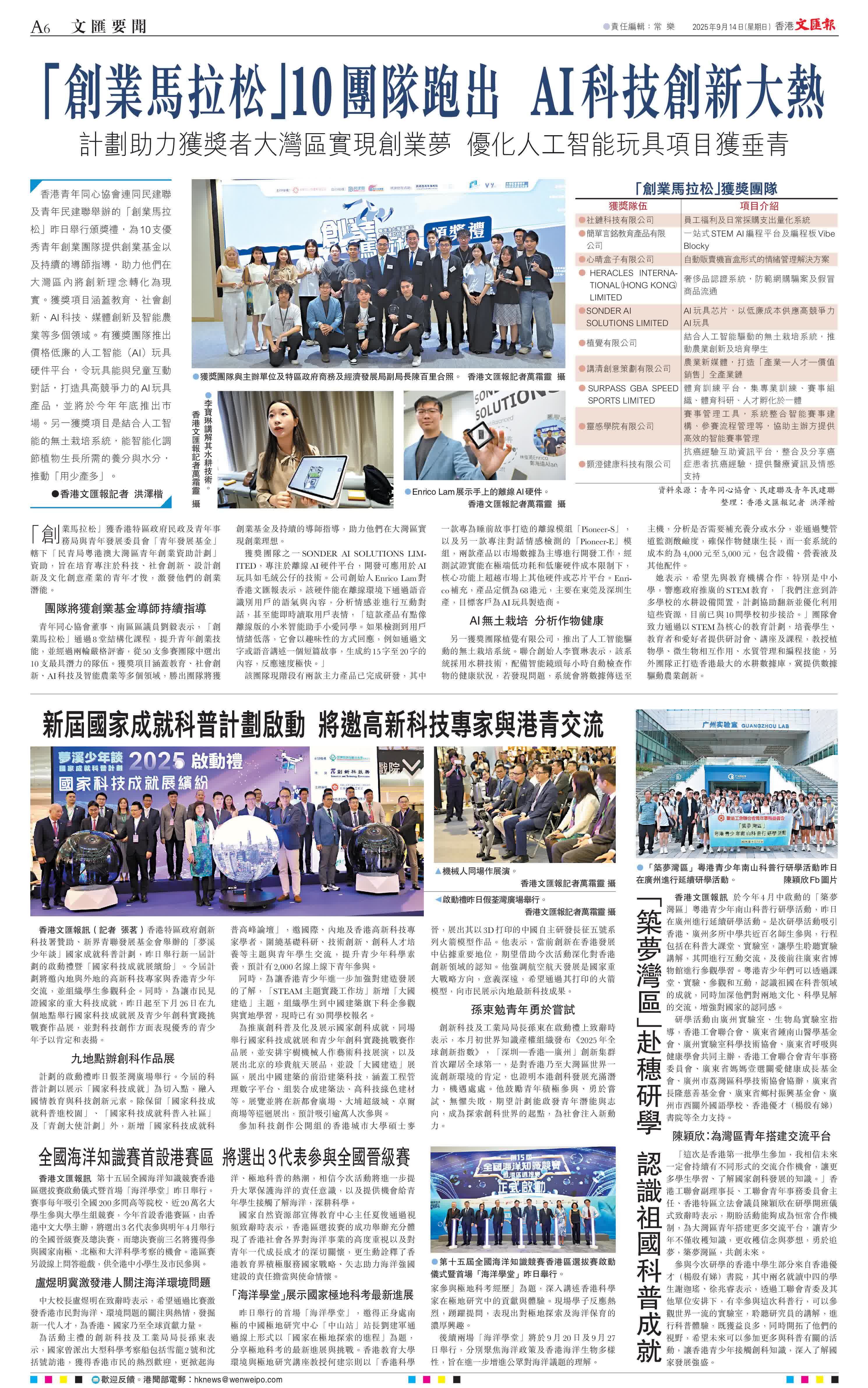 青年同心協會董事、南區區議員劉毅表示,「創業馬拉松」通過8堂結構化課程,提升青年創業技能,並經過兩輪嚴格評審,從50支參賽團隊中選出10支最具潛力的隊伍。獲獎項目涵蓋教育、社會創新、AI科技及智能農業等多個領域,勝出團隊將獲創業基金及持續的導師指導,助力他們在大灣區實現創業理想。
