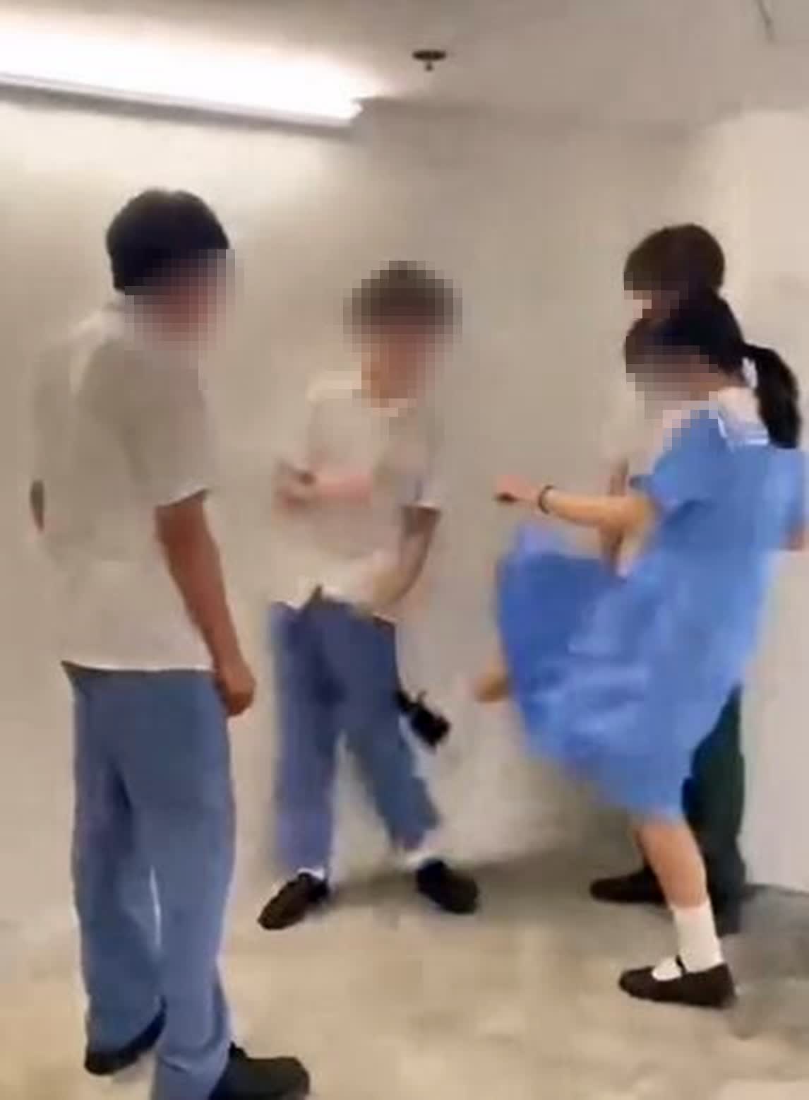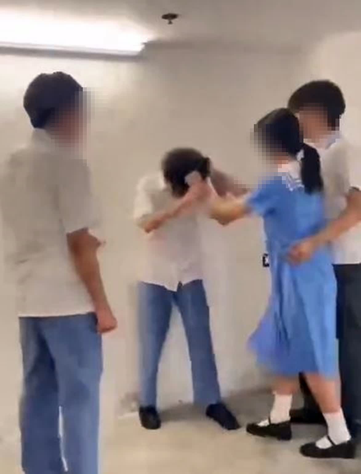 由網上流傳片段可見,除拍片者外,片中見一名男學生被另外2男1女學生包圍,當中一名男生穿灰褲,另外3人均穿藍色校服。片中主要由一名戴眼鏡男生主導,他先連環掌摑事主兩下稱:「我嗌咗佢叫佢唔好同你玩啦‥‥‥係唔X係呀!」灰褲男則指:「你應承唔到就唔好X做啦,係咪呀?」眼鏡男一度指向拍片者:「知唔知佢咩背景呀?呢度唔係大陸呀知唔X知呀?」