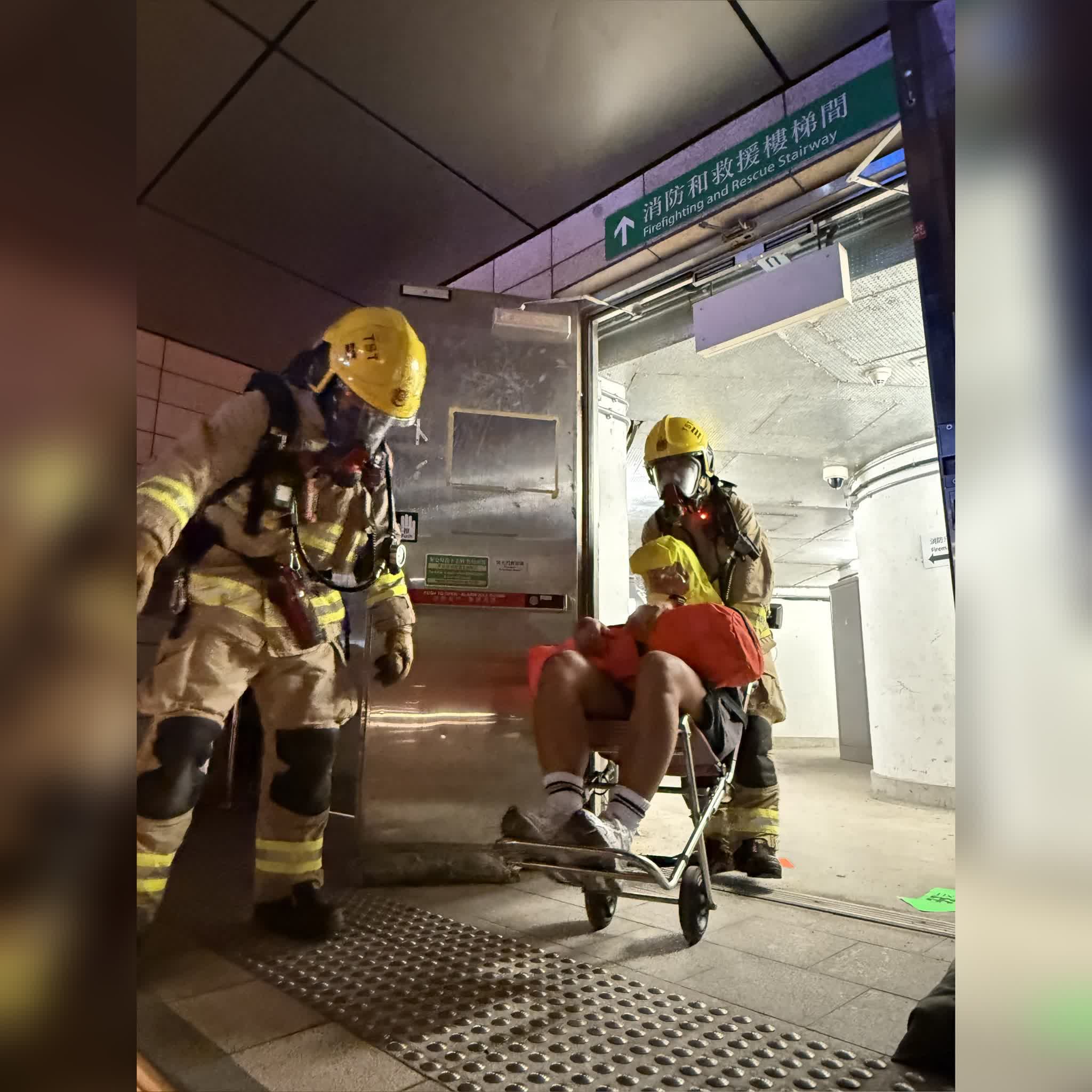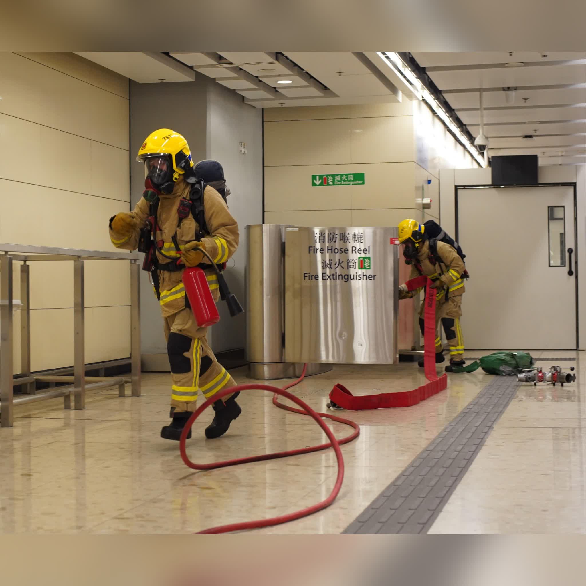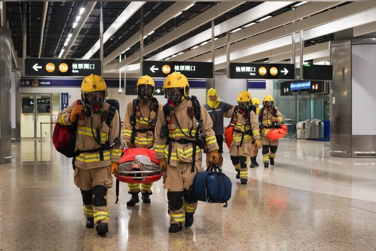 香港文匯報訊(記者 蕭景源)消防處與警務處、入境處、海關、衞生署及港鐵,前日(17日)聯同深圳市人民政府口岸辦公室、深圳鐵路公安處,以及內地西九龍站的邊檢站、海關、醫療點和聯勤中心,在高鐵西九龍站進行年度跨境聯合演練,模擬內地口岸區的列車月台及候車大堂有火警事故,造成多名乘客受傷。