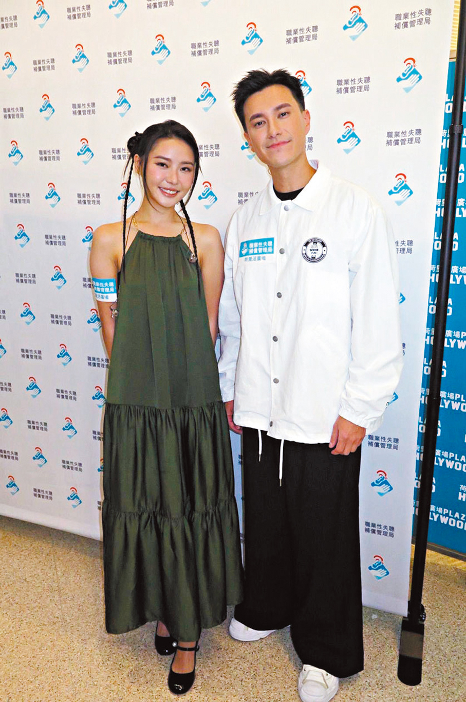 香港文匯報訊(記者 阿祖)戴祖儀與朱敏瀚(朱仔)昨日以表演嘉賓身份出席「護耳同行30載· 防禦職聰嘉年華」活動,兩人出席活動時發生小意外,戴祖儀上台前發現所穿的裙背部位置爆開,朱敏瀚則因顧着與粉絲打招呼,不慎仆倒跪在地上。