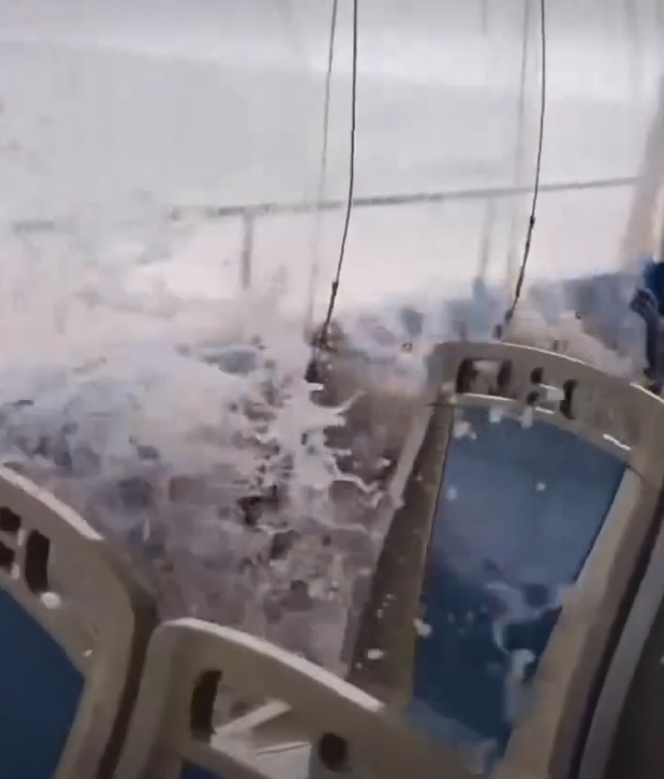 香港文匯報訊(記者 蕭景源)超強颱風「樺加沙」襲港。網上有片段顯示於今日(23日)下午天文台發出八號烈風或暴風信號前,早上有船隻在海面遭遇巨大湧浪,海浪打入船艙,場面驚險。但見船上影入畫面只有一人,且表現非常淡定,只顧觀看手機。片段亦未交代時間和地點。