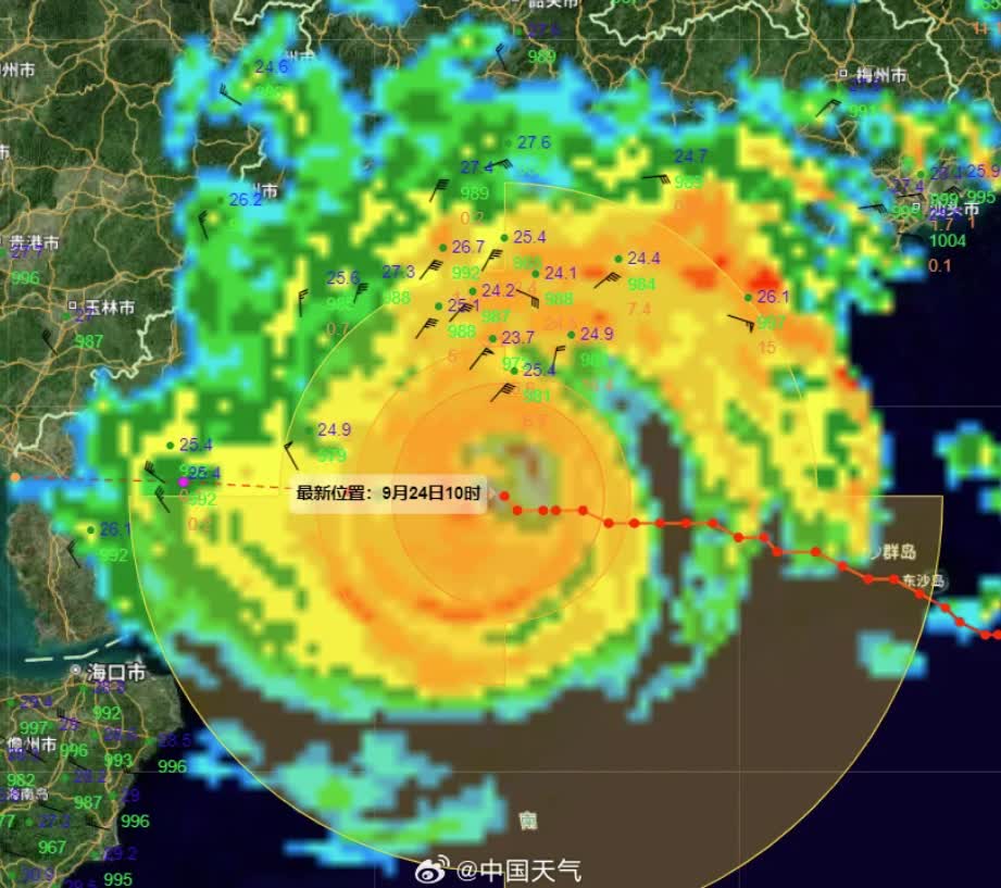 目前「樺加沙」越來越靠近陸地,距離廣東陽江只有170公里左右,它的10級風圈已覆蓋陸地,今天上午廣東珠海香洲區的廟灣主站,位於颱風中心北側,監測到17級強風(59.1米/秒)。「樺加沙」10級風圈覆蓋陸地,說明其雲牆區已觸達陸地,珠三角接下來將承接「樺加沙」最強烈的風雨,進入影響最嚴重時段。