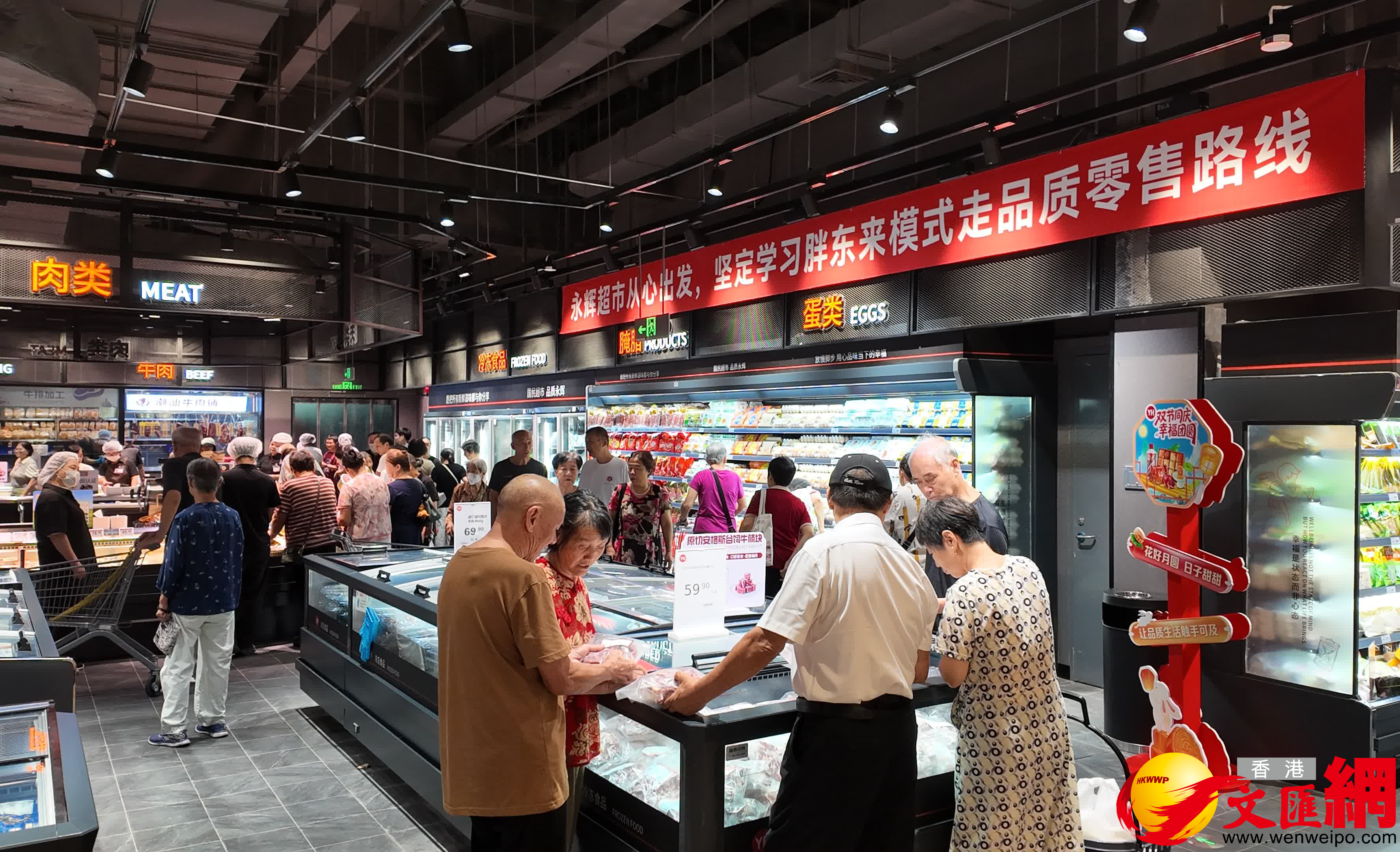 (香港文匯網記者郭若溪)9月26日,永輝超市南山首家「學習胖東來」自主調改門店-深圳南山區嘉樂道店正式開業。記者在現場看到,新開的嘉樂道店熟食區主推脆皮燒豬、燒臘及石歧鹵鴿等等廣東特色商品。伴隨中秋節的即將來臨,門店還推出種類多樣的特色月餅,鮮花餅、滇式鮮花雲腿月餅等。目前,永輝「胖東來模式」實現深圳全城覆蓋,前7家開業的調改門店已經實現整體盈利。