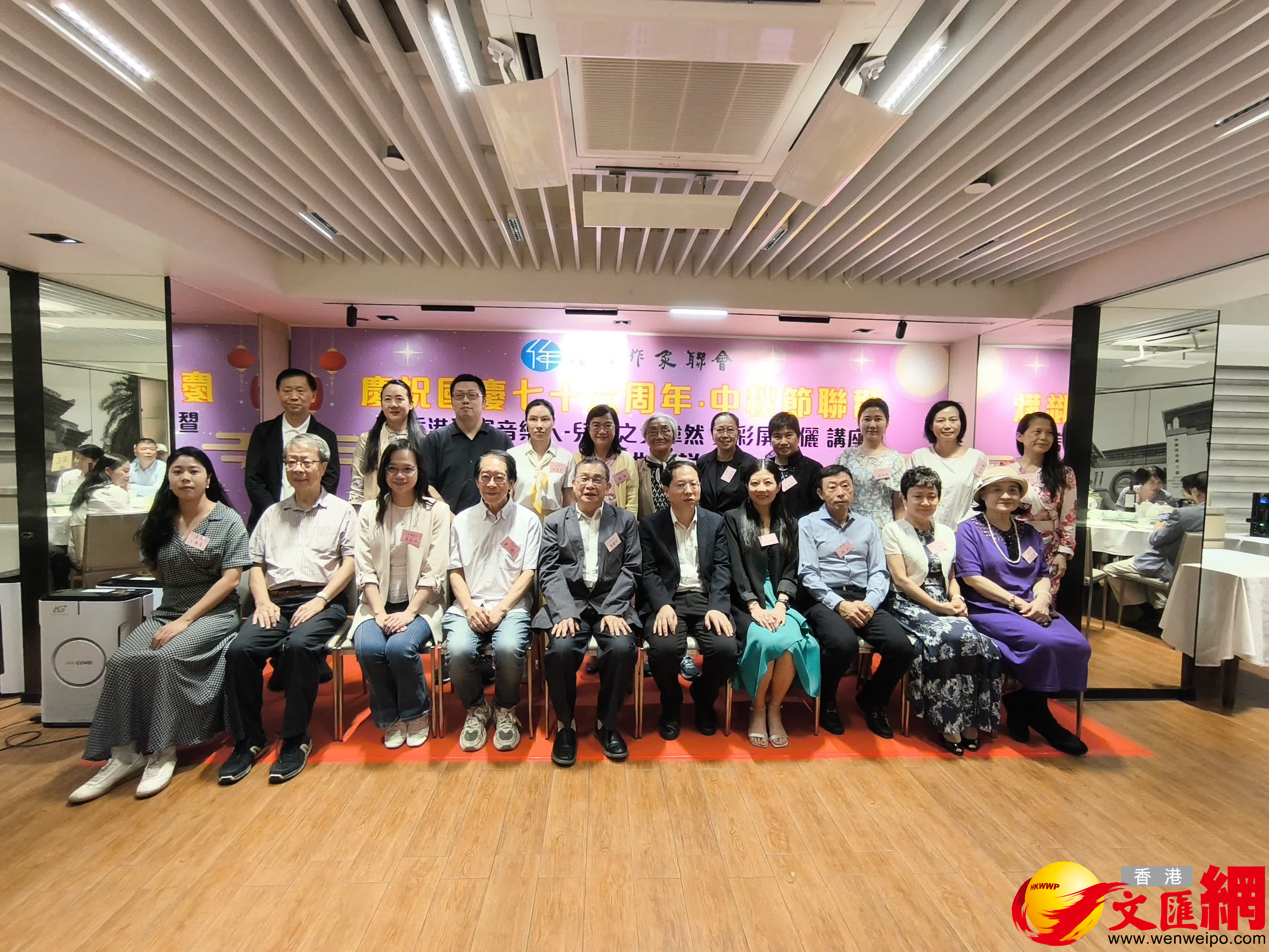 香港文匯報訊 香港作家聯會今日(26日)晚齊聚一堂,懷着無比喜悅和自豪的心情共同慶祝中華人民共和國七⼗六周年華誕,出席的嘉賓包括中央政府駐港聯絡辦宣⽂部⽂藝處副處⻑艾希繁、《⾹港⽂學》副社⻑、總編輯游江、⾹港三聯書店總經理葉佩珠、中国十大电视主持、杭州电视台主持人、国家一级播音员周莹、⾹港電影研究者阮紫莹、香港江蘇社團總會常務理事、香港蘇州總會總幹事洪栢斯、⾹港南天畫會主席劉宏業、⾹港詩詞學會執⾏會⻑蔡瑞義及夫⼈⿈淑琴、國際當代華⽂詩歌研究會副主席章誌文、《⾹港書評家》主編邊⼩嶸、 國際當代華⽂詩歌研究會⽂藝部部⻑張建⻘及丈夫李平、國際當代華⽂詩歌研究會執⾏秘書⻑陳如琴等、出席晚會的還有作聯會⻑潘耀明,執⾏會⻑羅光萍,副會⻑周蜜蜜,永遠名譽會⻑、副監事⻑江揚,副監事⻑⿈維樑教授,以及各位監事、理事、會員和⽂學界作家朋友。