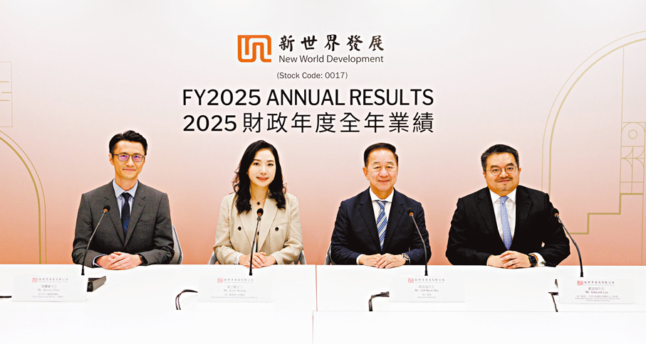 鄭家純在業績報告中表示,「過去一年,市場環境複雜多變,挑戰層出不窮」,又說「我們以戰略定力錨定方向,於壓力中沉潛蓄勢,在衝擊下柔韌破局,始終葆有與時俱進的活力」。新世界發展執行董事兼行政總裁黃少媚昨亦表示,集團的減債工作見成效,2025財年全年總債務及淨債務都有下跌,現金流亦都明顯改善,回復正數,反映集團財務狀況正回穩。