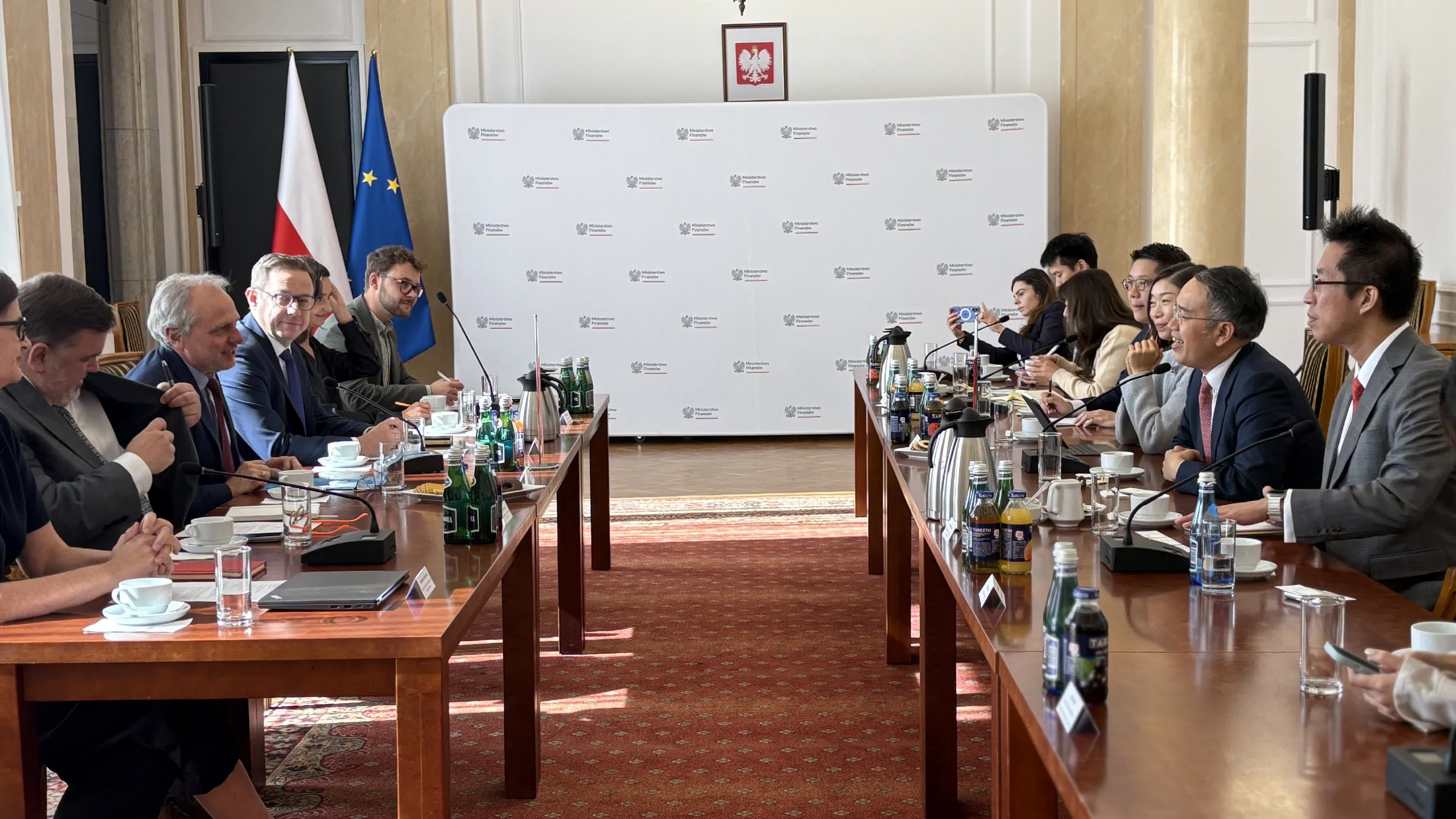 香港文匯報訊(記者 蕭景源)財經事務及庫務局局長許正宇在結束波蘭訪問前,到訪華沙證券交易所,並與波蘭官員和商界人士會面,又參觀一家在波蘭蒂黑設廠的內地企業,了解「出海」企業的需要。會面期間,許正宇介紹香港股市強勁的發展勢頭,以及背後的政策支持;其中行政長官在2025年《施政報告》中宣布一系列持續強化股票市場新舉措,包括進一步完善主板上市和結構性產品發行機制,以及推動更多海外企業來港第二上市。華沙證券交易所認為,內地與香港是現今經濟的增長引擎,許正宇期待與華沙證券交易所建立更多聯繫,令兩地股票市場更多元化。