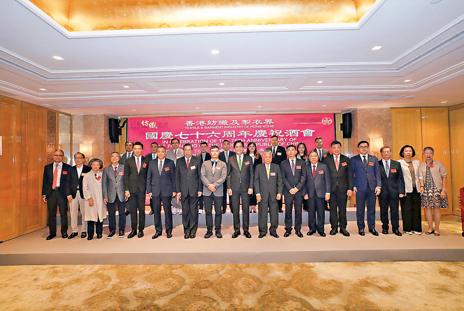 香港文匯報訊 (記者 嚴鍇華)由香港紡織商會及香港紡織業聯會聯合主辦的「同賀國慶76載 紡織新征程 十五五開新篇」國慶酒會於前日舉行,超過200位來自紡織製衣業界、政商學界及相關團體的代表出席,共賀國慶、共話行業發展新機遇。特區政府財政司副司長黃偉綸致辭時表示,紡織製衣業在「十四五」及即將展開的「十五五」規劃中,將迎來創科與高端製造並進的新機遇,勉勵業界繼續融入大灣區建設,擴展市場,貢獻國家與香港。立法會主席梁君彥致辭時強調,立法會將繼續與行政機關和產業界緊密合作,推動香港高質量發展,為國家建設貢獻力量。