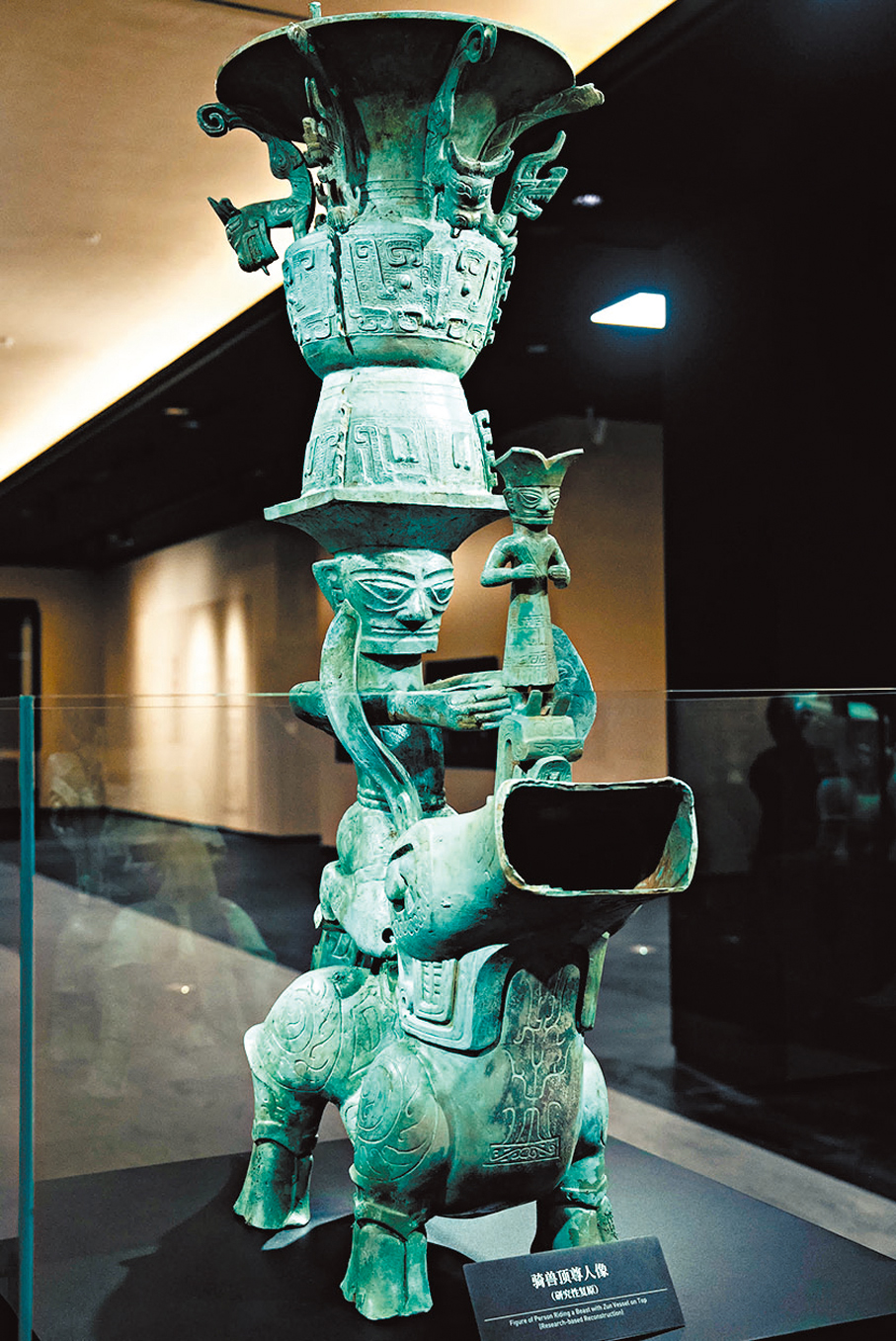 三星堆青銅器創新鑄造技術研究也取得新突破。四川省文物考古研究院、故宮博物院、北京科技大學與英國劍橋李約瑟研究所的聯合研究顯示,三星堆青銅器在商代晚期形成以分鑄為核心,兼用渾鑄、鍛造的創新鑄造技術體系。獨特的「芯骨—條形芯撐」技術,有效解決了細長、彎曲器物的成型難題。這種技術在三星堆國寶級文物一號青銅神樹上就有體現。