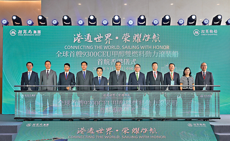 全球首艘9300CEU(標準車位)甲醇雙燃料動力滾裝船「CM HONG KONG」「港榮」輪首航昨日在港舉行,該艘由招商輪船訂造的輪船在設計上採用領先、突破的前沿技術,可使用綠色甲醇作為船舶燃料,較傳統燃料船舶減少逾70%碳排放量,每年可分別運送近6萬輛及20萬輛車至歐洲及東南亞。香港特區政府政務司司長陳國基在儀式上表示,新年度施政報告提出進一步將香港打造成為綠色船用燃料加注中心,政府亦將提出修改法例,為用作出航船隻燃料的甲醇提供免稅優惠。同時正就青衣南一幅用地徵求業界意向,發展綠色船用燃料貯存設施,加快構建完善的綠色船用燃料生態圈,「CM HONG KONG」「港榮」輪首航對正在銳意發展綠色航運的香港別具意義。 ●香港文匯報記者 張弦