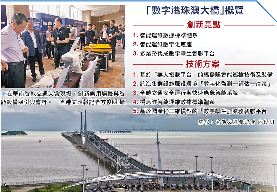 香港文匯報訊(記者 方俊明 廣州報道)「港珠澳大橋數字化工程建設與運維應用實踐」成果昨日在2025廣東省交通運輸行業創新應用場景展示交流暨第九屆華南智能交通大會上亮相。首次構建的「橋島隧智能運維數據標準體系」填補行業空白,納入「粵港澳大灣區共通執行標準」建設樣板工程,由粵港澳三地共建、共用、共享。目前該標準體系已成功應用於交通運輸領域首批新型基礎設施項目「粵港澳跨海智慧通道工程」,將逐步在大灣區乃至全國的重大交通基礎設施推廣應用。