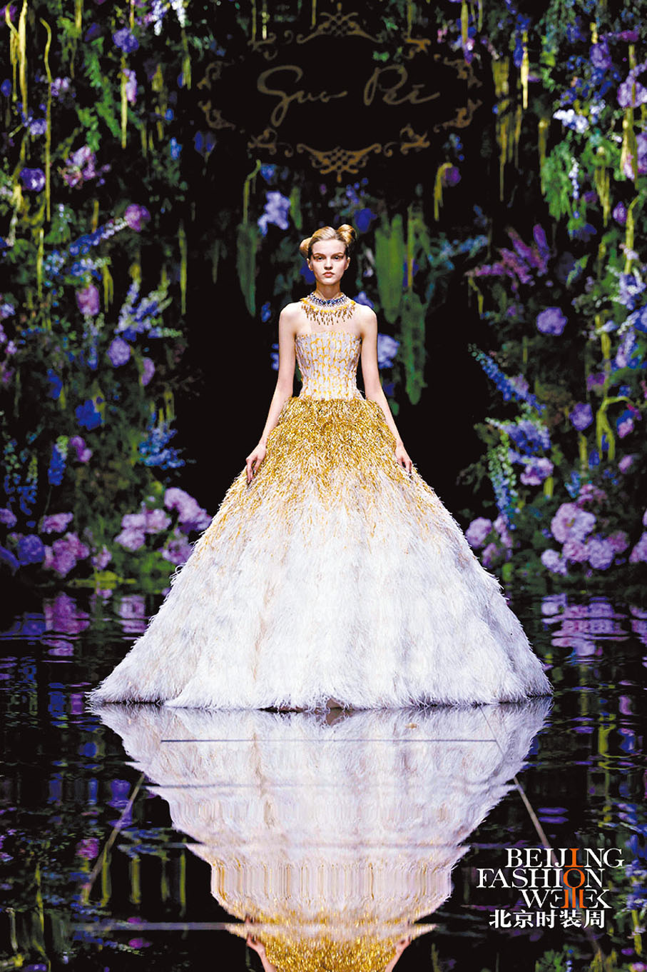 在闊別高訂舞台五年之後,郭培首次帶着她的全新系列拉開北京時裝周的大幕。此次新系列以「鎏光」為主題,將她對時間、工藝、手工精神深刻的思考注入其中。郭培說,「鎏光」的靈感源自於生活中稍縱即逝卻攝人心魄的璀璨瞬間,熔金傾瀉的耀目,碎金瀲艷如水波,古老器物上歷經時光磨礪卻溫潤的光澤,設計師捕捉到那短暫的瞬間,將這難以捕捉的流動之美凝鑄於作品之中。