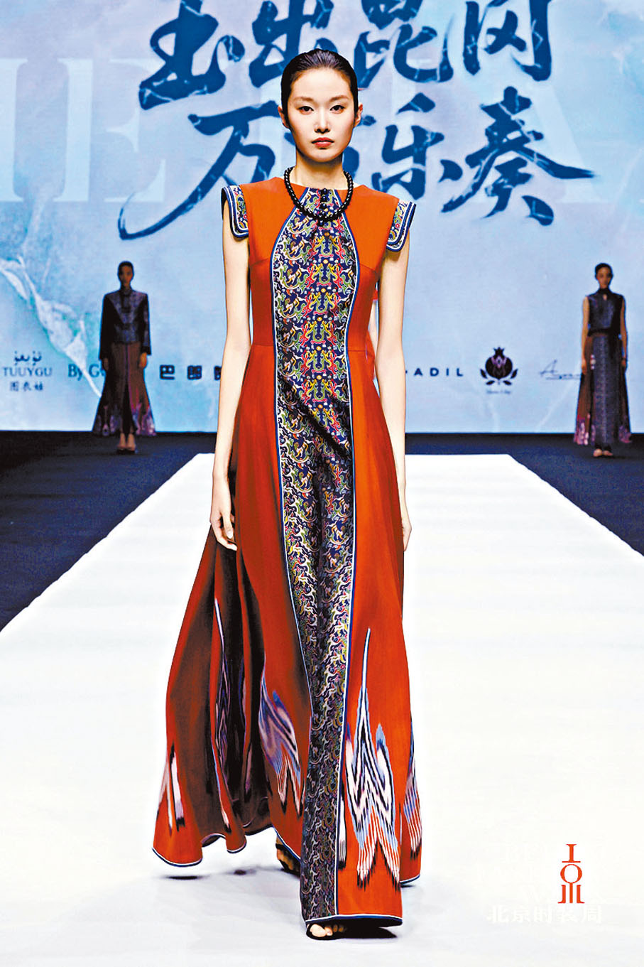 民族服裝設計師阿牛阿呷是彜族服飾傳承與創新代表人物,是次秀場服飾通過彜族、藏族、蜀地等多元民族元素的交融,展現中華文化的包容性與創新力。大秀不僅呈現出各民族服飾之美,更構建一個跨越時空的對話場景,傳統與現代、東方與西方、民族與時尚在此交融,奏響了一曲「和而不同」的華服樂章。