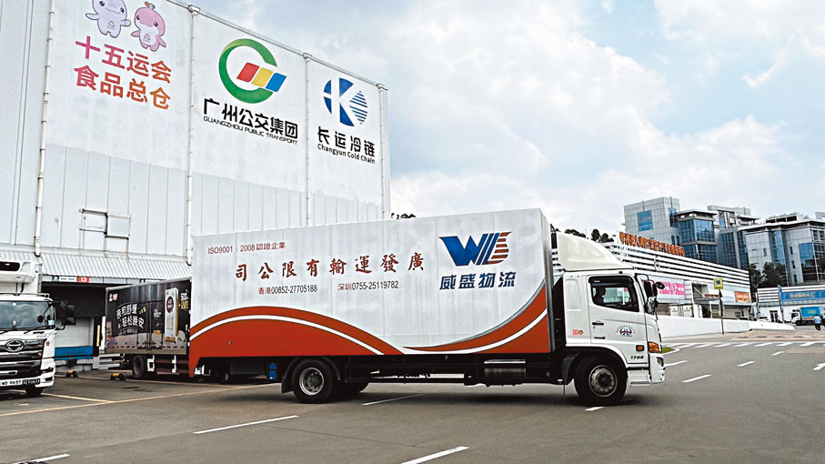 十五運會舉辦時間日益臨近,備受關注的運動員食材供應正陸續就位。昨日上午,在廣州海關關員的監管下,搭載着冷凍鴨肉、鯧魚、蝦仁及調味料等在內的香港賽區11噸運動員食材,從位於廣州長運冷鏈物流中心的十五運會和殘特奧會廣州運動員食品區域總倉(下稱廣州區域總倉)發出,即日下午抵達香港,這是賽會首批供應港澳賽區的運動員食品。在統一採購、統一價格、統一倉儲、統一品控、統一系統、統一運輸的「六個統一」模式下,香港賽區除新鮮果蔬以外的六大品類運動員食材,將統一從廣州區域總倉調度供應,至10月底前,香港賽區所需的250噸食材將全部抵港。●文/圖:香港文匯報記者 敖敏輝 廣州報道