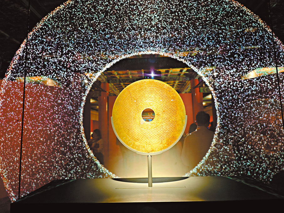 在午門東雁翅樓展廳內,透過兩千多年前的青玉獸面紋璧內孔望去,蓮鶴方壺上展翅欲飛的仙鶴栩栩如生,再往遠處,金甌永固杯熠熠生輝。雖是故宮,非止舊章。徐婉玲道出將3件文物連串展示的原委,這是跨越千年的對視,見證着中華文明的綿長。據了解,《清明上河圖》等小部分珍貴書畫將限期展出,隨後進行保養,以便延年。而接棒文物也都是重量級,《上陽台帖》、沈周《仿黃公望富春山居圖》等確定亮相。