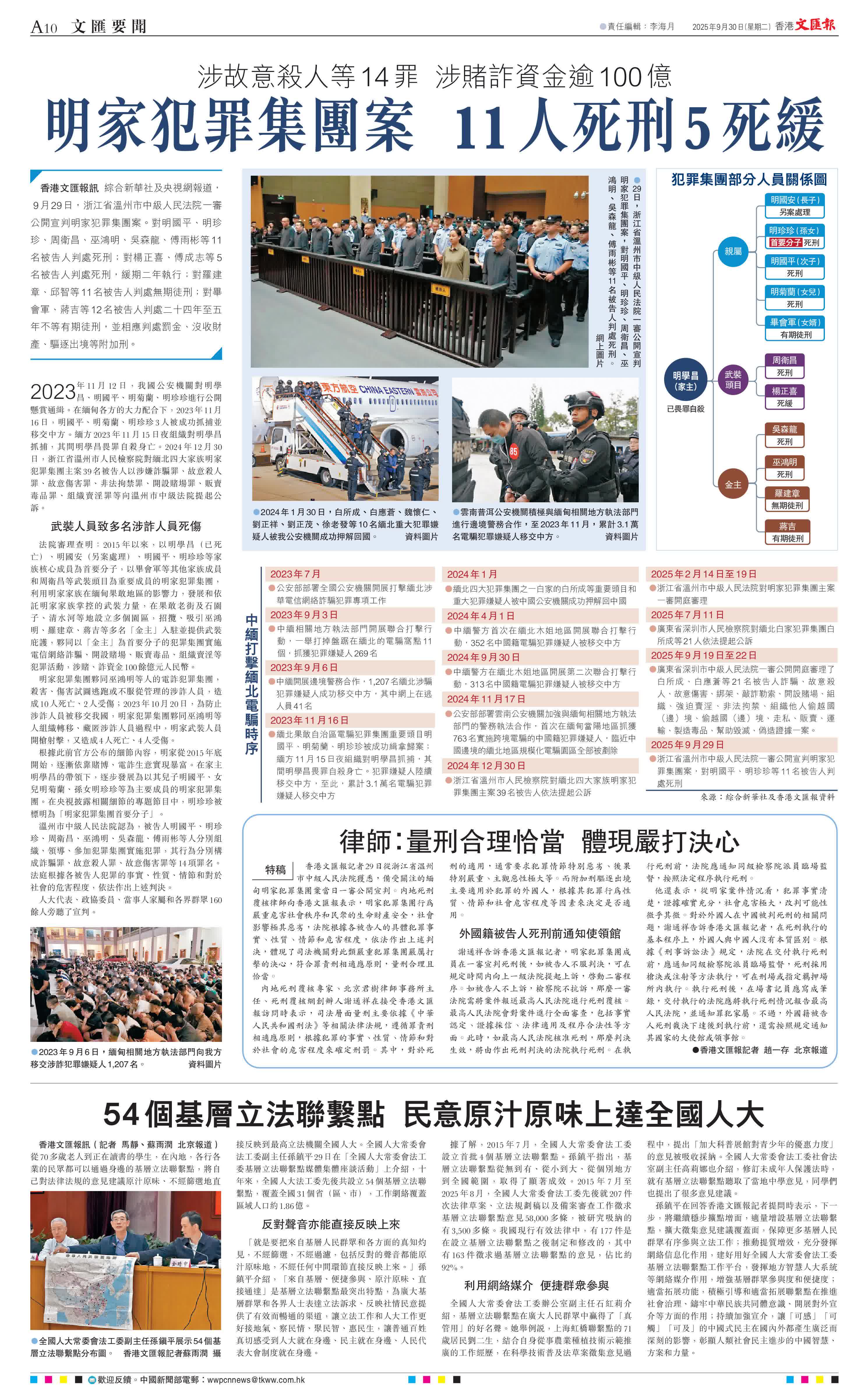 (香港文匯報記者 趙一存 北京報道)香港文匯報記者29日從浙江省溫州市中級人民法院獲悉,備受關注的緬甸明家犯罪集團案當日一審公開宣判。內地死刑覆核律師向香港文匯報表示,明家犯罪集團行為嚴重危害社會秩序和民眾的生命財產安全,社會影響極其惡劣,法院根據各被告人的具體犯罪事實、性質、情節和危害程度,依法作出上述判決,體現了司法機關對此類嚴重犯罪集團嚴厲打擊的決心,符合罪責刑相適應原則,量刑合理且恰當。