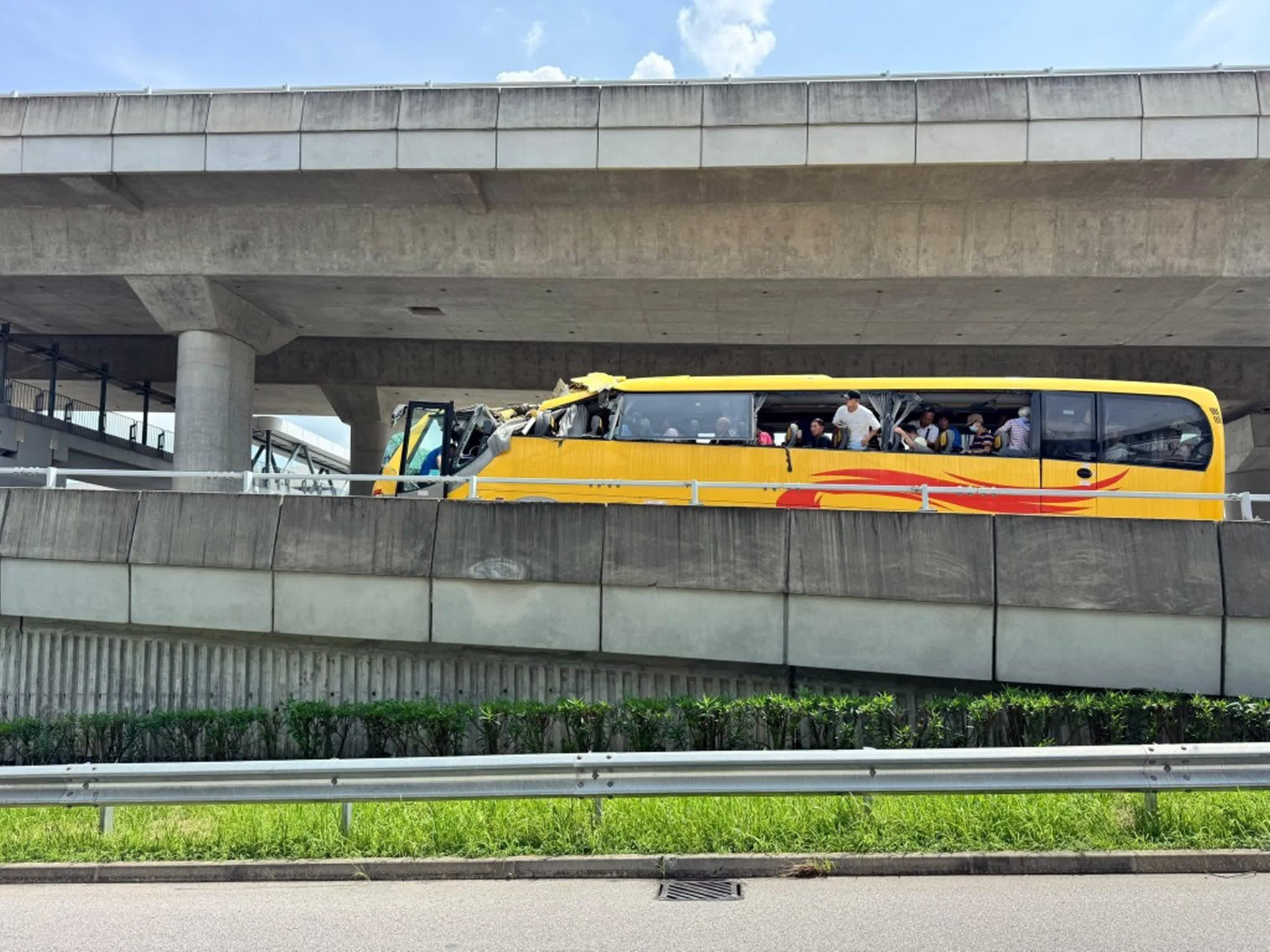 香港文匯報訊(記者 蕭景源)一輛旅遊巴今日(9月30日)駛入香園圍口岸只供私家車和電單車使用的路面時,因車身高於行人天橋底,旅遊巴車頭頂部撞橋底被削開,最少15名乘客受輕傷,其中14人需要送院;警方列作交通意外有人受傷及政府財物損毀案處理,以涉嫌「危險駕駛」罪名拘捕57歲姓李旅遊巴司機,案件交由新界北交通意外調查隊第一隊跟進。