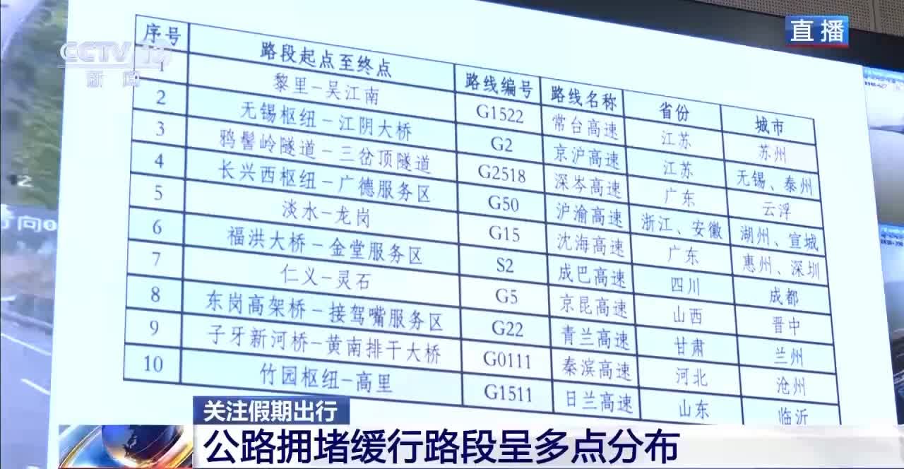 因為今年假期一共8天,因此公路中長距離的出行增長比較明顯。出行總量大、熱點多,公路擁堵緩行路段呈現多點分布的特徵。