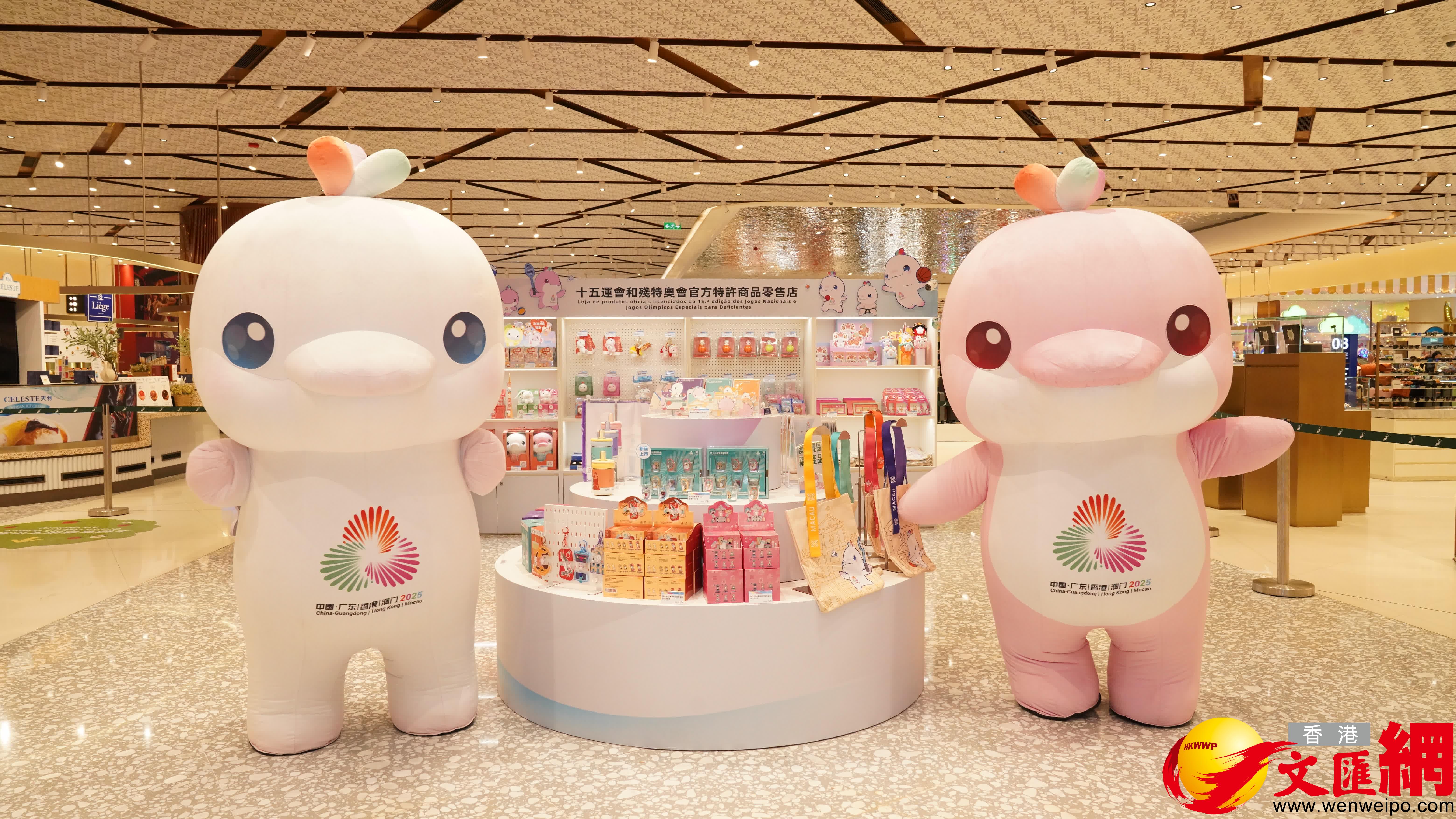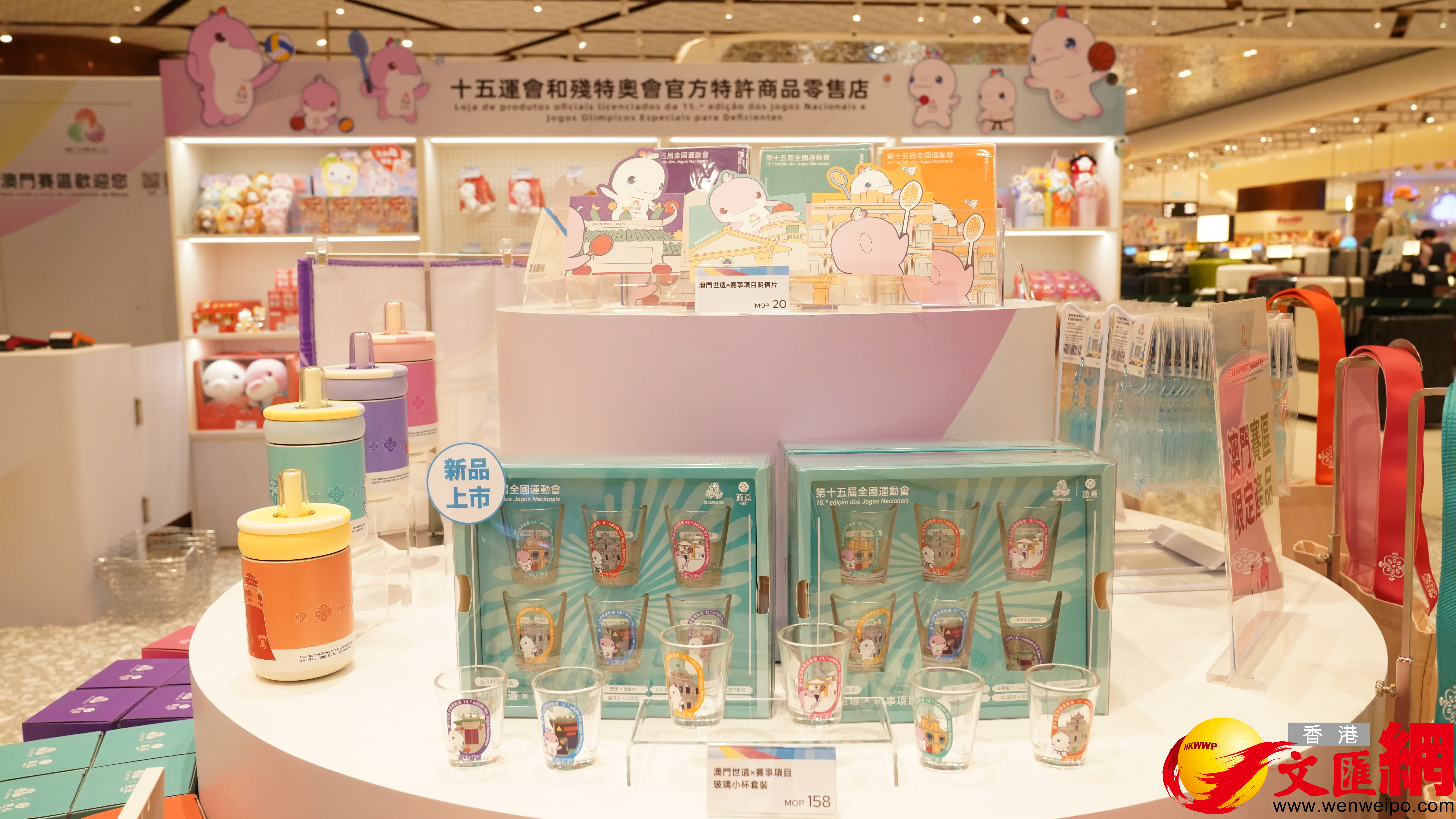 十五運會及殘特奧會官方特許商品零售店今(30)日在上葡京開幕,潘永權表示,紀念品由本地設計師打造,融合澳門特色,深受歡迎,為方便市民及遊客,目前已在塔石體育館、銀河、美高梅、新濠影匯及望廈體育館等地設立五至六個零售點,並計劃於賽場周邊增設臨時店舖。