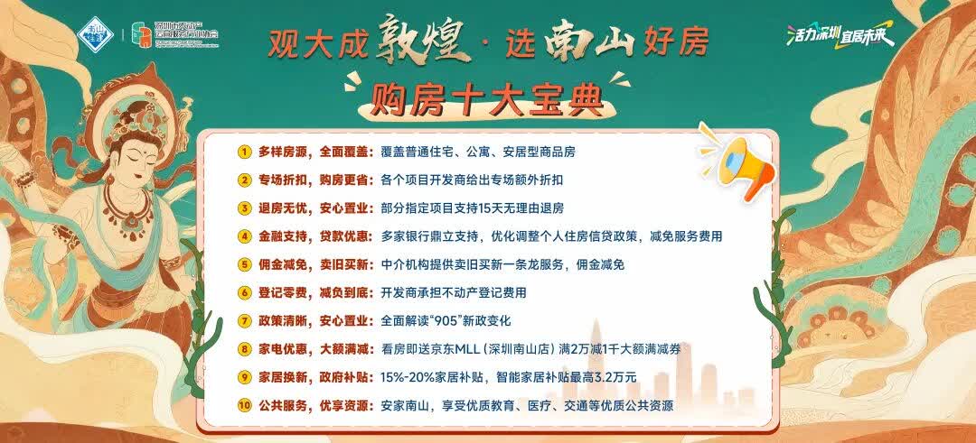 10月1日起,由南山區住房和建設局主辦的「南山好房節」國慶專場在南山博物館開幕。活動整合全區30餘個在售樓盤資源,開發商、中介機構及銀行聯合推出專項優惠。其中,部分項目首次試行「15天無理由退房」政策,降低購房風險。