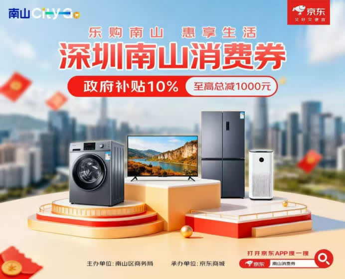 南山區商務局聯合京東推出2000萬元線上消費補貼,市民登錄京東APP搜索「南山消費券」即可領取;京東MALL同步開展500萬元「煥新超級補」活動,覆蓋3C數碼、家電等品類。此外,天虹商場發放滿減消費券,可與店內折扣疊加使用。