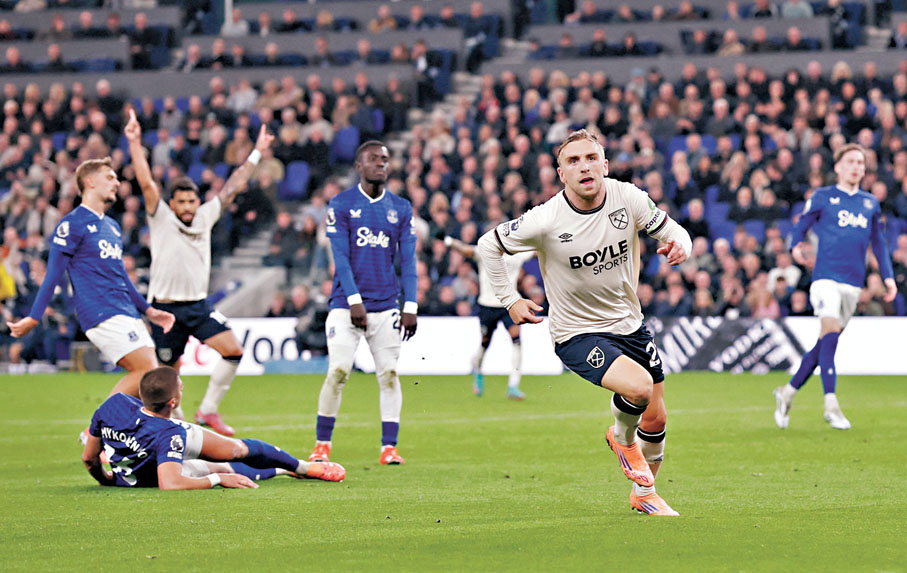 韋斯咸開季首5場英超錄1勝4負,球會上周終解僱領隊樸達,並找來前諾定咸森林領隊紐奴執教,上任48小時便面對同樣是前韋斯咸領隊的莫耶斯。「鎚仔幫」今場大部分時間捱打,開賽18分鐘就被愛華頓中堅米克堅尼頂入先開紀錄。「拖肥糖」領先後繼續搶攻但未能把握機會擴大比數。相反韋斯咸下半場靠一次反擊,由查洛保雲射入扳平,最終亦憑此入球助韋斯咸搶得一分。